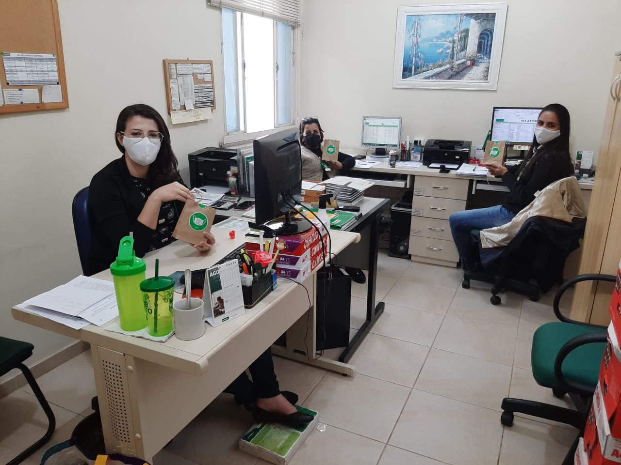 Por causa das atividades comerciais que retornaram, em Itaguaí, Mangaratiba e Seropédica, além do dia a dia de trabalho, na própria sede administrativa, a Unimed Costa Verde sentiu a necessidade de montar kits com álcool em gel hidratante 70 e máscara para entregar aos seus colaboradores e, assim, assegurar ao máximo possível a sua saúde e integridade.