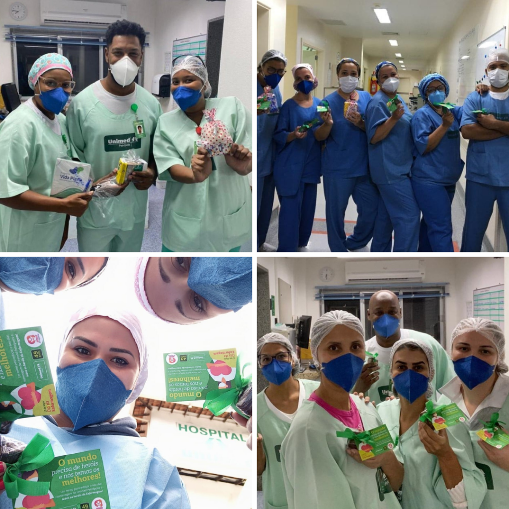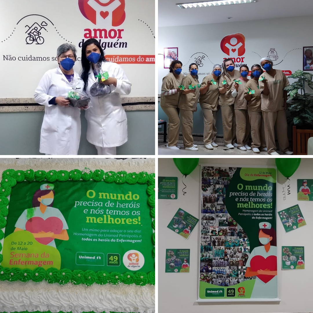 Além de uma campanha nas redes sociais, a Unimed Petrópolis promoveu um lanche com cachorro-quente e bolo e presenteou todos os enfermeiros e técnicos de enfermagem do Hospital Unimed Petrópolis com um pão de mel e uma mensagem como forma de agradecimento por sua dedicação.