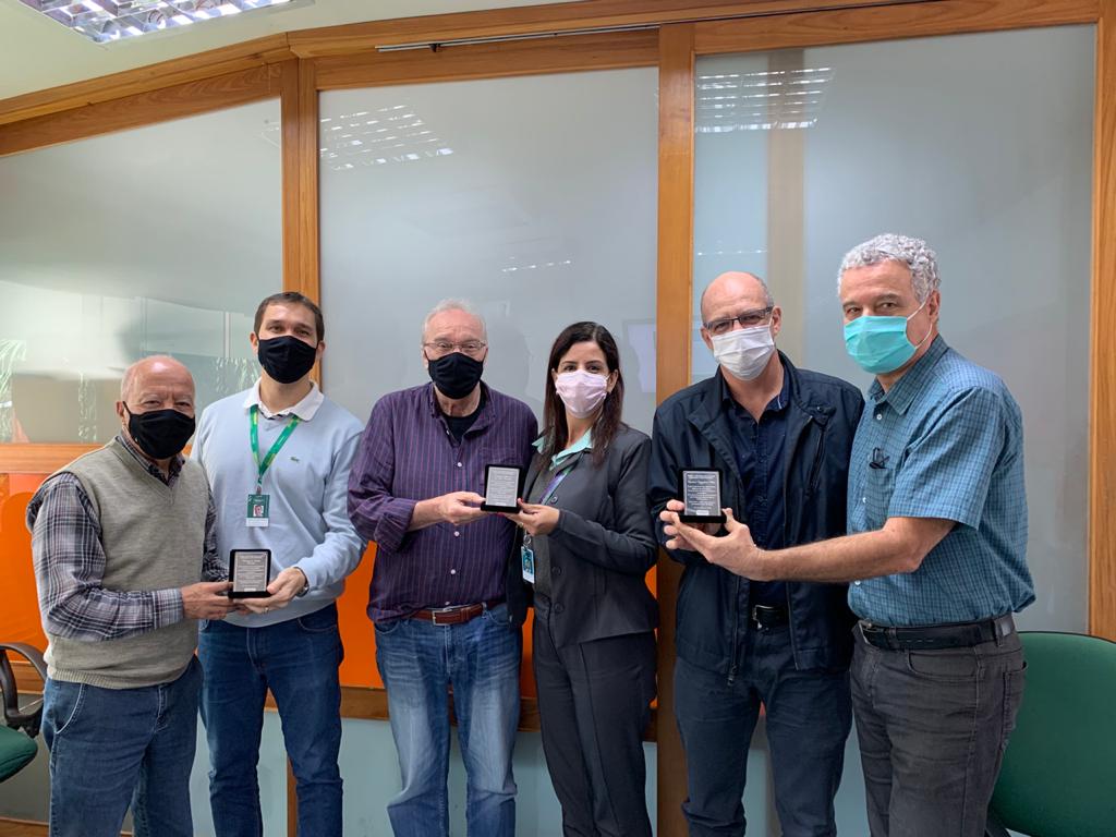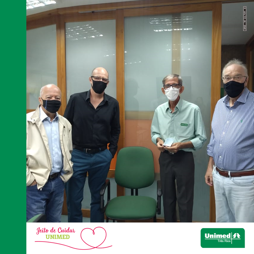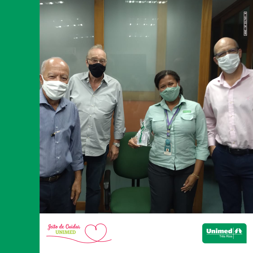 Em junho, a Diretoria da Unimed Três Rios fez a entrega do prêmio Tempo de Casa para os colaboradores Aluízio Fontes, dez anos, Carla Viviane de Almeida, cinco anos), Márcio Mello, 25 anos, Fernanda Antunes, 25 anos), Frederico Pecene, dez anos e Ignácio Tepedino, 25 anos.