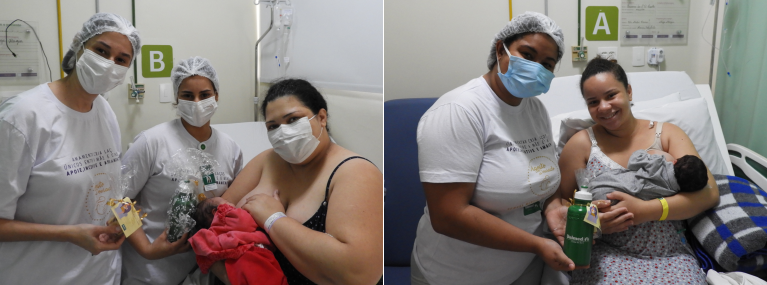 A equipe multidisciplinar, que é composta por médicas, enfermeiras, fonoaudiólogas e técnicas de enfermagem, aproveitou o Agosto Dourado para reforçar as orientações no momento da primeira mamada. Brindes estão sendo entregues às mães com o objetivo de motivar este de amor.