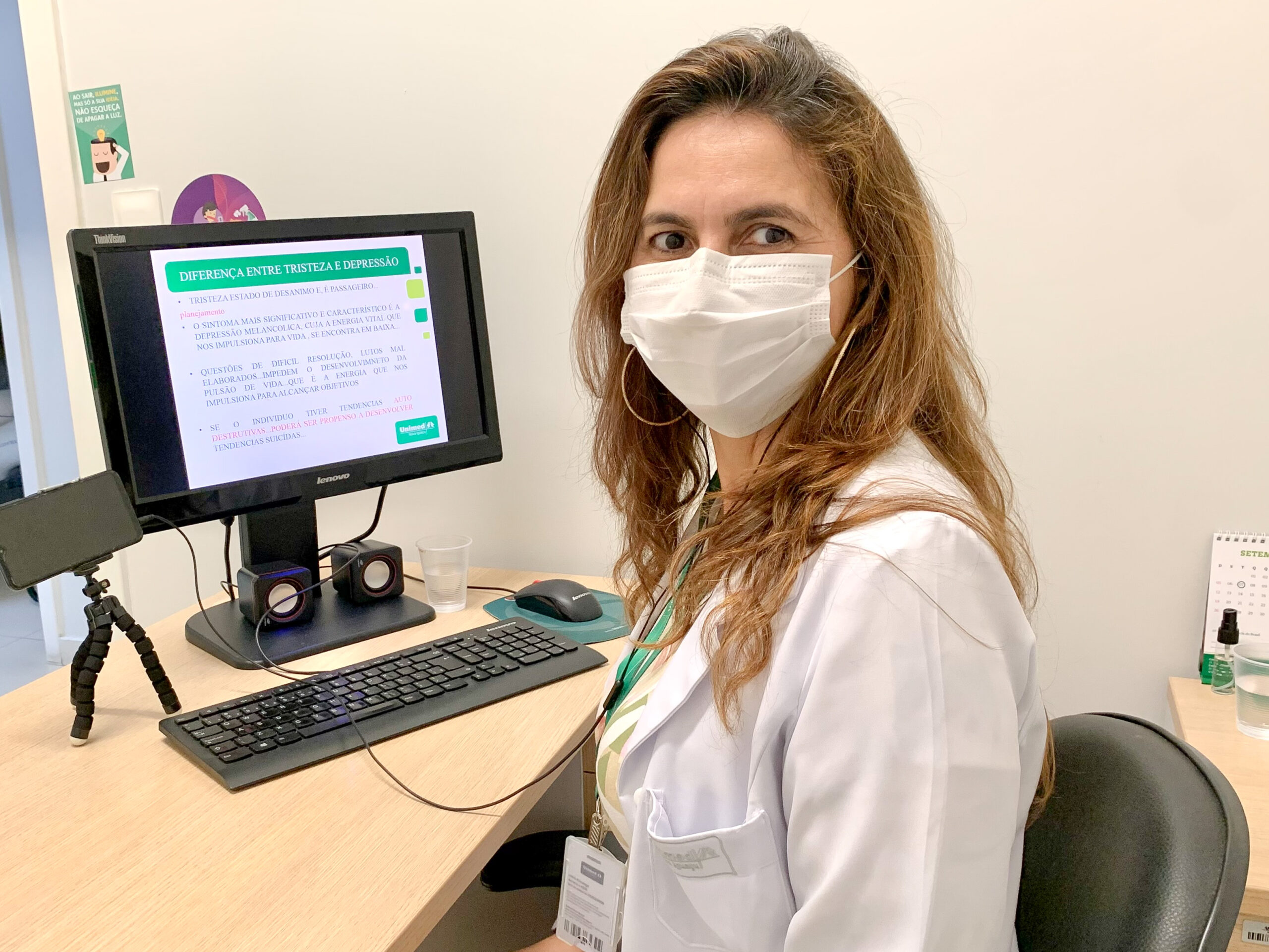 A psicóloga do Núcleo de Atendimento à Saúde – NAS, Adriana Iannelli, ministrou remotamente palestra com foco na Campanha Setembro Amarelo – Prevenção ao Suicídio aos funcionários da empresa Embelleze, no dia 21 de setembro. Segundo dados da Organização Mundial da Saúde – OMS, no Brasil, cerca de 12 mil pessoas tiram a própria vida por ano, quase 6% da população. No mundo, são cerca de 800 mil suicídios anuais. O Brasil só perde para os EUA.