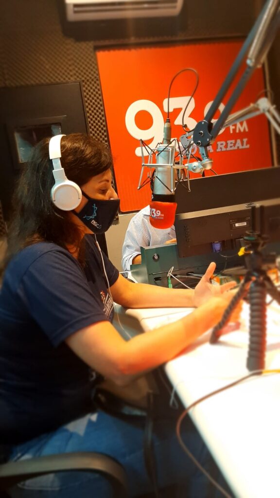 Priscila Pinceschi em entrevista à rádio local junto com a Unimed Resende para divulgar a campanha