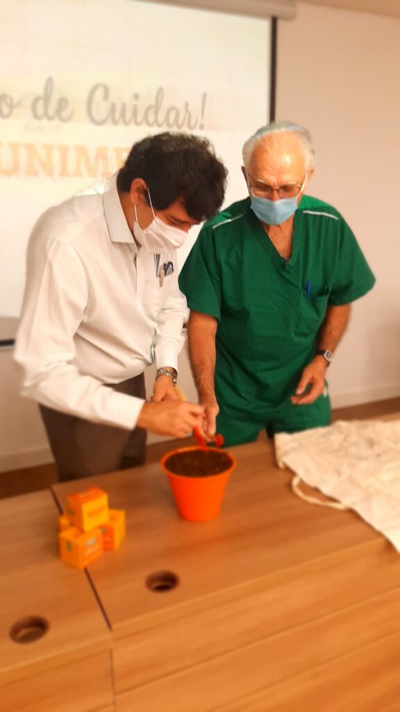 Em 10 de novembro, a Unimed Resende completou 29 anos de fundação e além de repartir um bolo personalizado com todos os colaboradores, a cooperativa marcou a data com o lançamento das competências do Jeito de Cuidar. Na solenidade, gestores foram convidados a participar do plantio das quatro sementes que simbolizam cada uma delas. Ao final, todos receberam caixinhas com sementes de girassol para espalhar a ideia. O brinde também foi extensivo aos beneficiários, que serão diretamente impactados pelo aprimoramento desse trabalho.