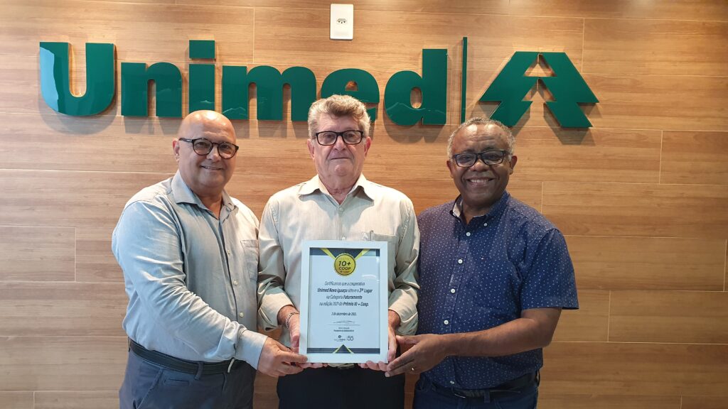 A Unimed Nova Iguaçu conquistou o 3º lugar no Prêmio 10+Coop – Categoria Faturamento, edição 2021, concedido pelo Sistema OCB/RJ – Sindicato e Organização das Cooperativas do Estado do Rio de Janeiro. O certificado foi recebido pelo diretor Administrativo, Carlos Alberto Vianna, durante a 1ª Conferência Rio Mais Coop de Empreendedorismo Cooperativo, em solenidade realizada no dia 2 de dezembro, na Zona Sul do Rio. Além de lideranças do setor, o encontro reuniu parlamentares, autoridades e especialistas que debateram temas como inovação, empreendedorismo, crescimento econômico e desenvolvimento social.