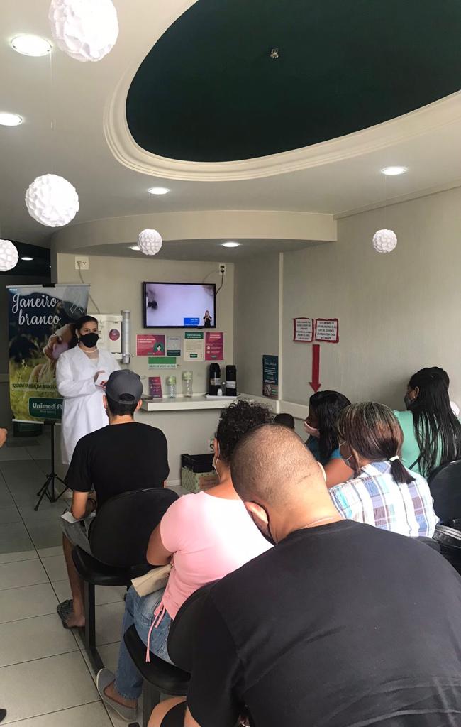 A equipe do Centro de Atendimento Multidisciplinar Unimed (Camu) promoveu, durante uma semana, mini palestras aos usuários do setor abordando a campanha Janeiro Branco. “O objetivo da iniciativa foi chamar a atenção das pessoas para as questões e necessidades relacionadas à saúde mental e emocional. Além do debate sobre o cenário atual em que a humanidade está vivenciando, os encontros ajudaram a esclarecer dúvidas, desmistificar tabus, realizar dinâmicas e estimular a reflexão”, comenta a coordenadora Renata Araújo.
