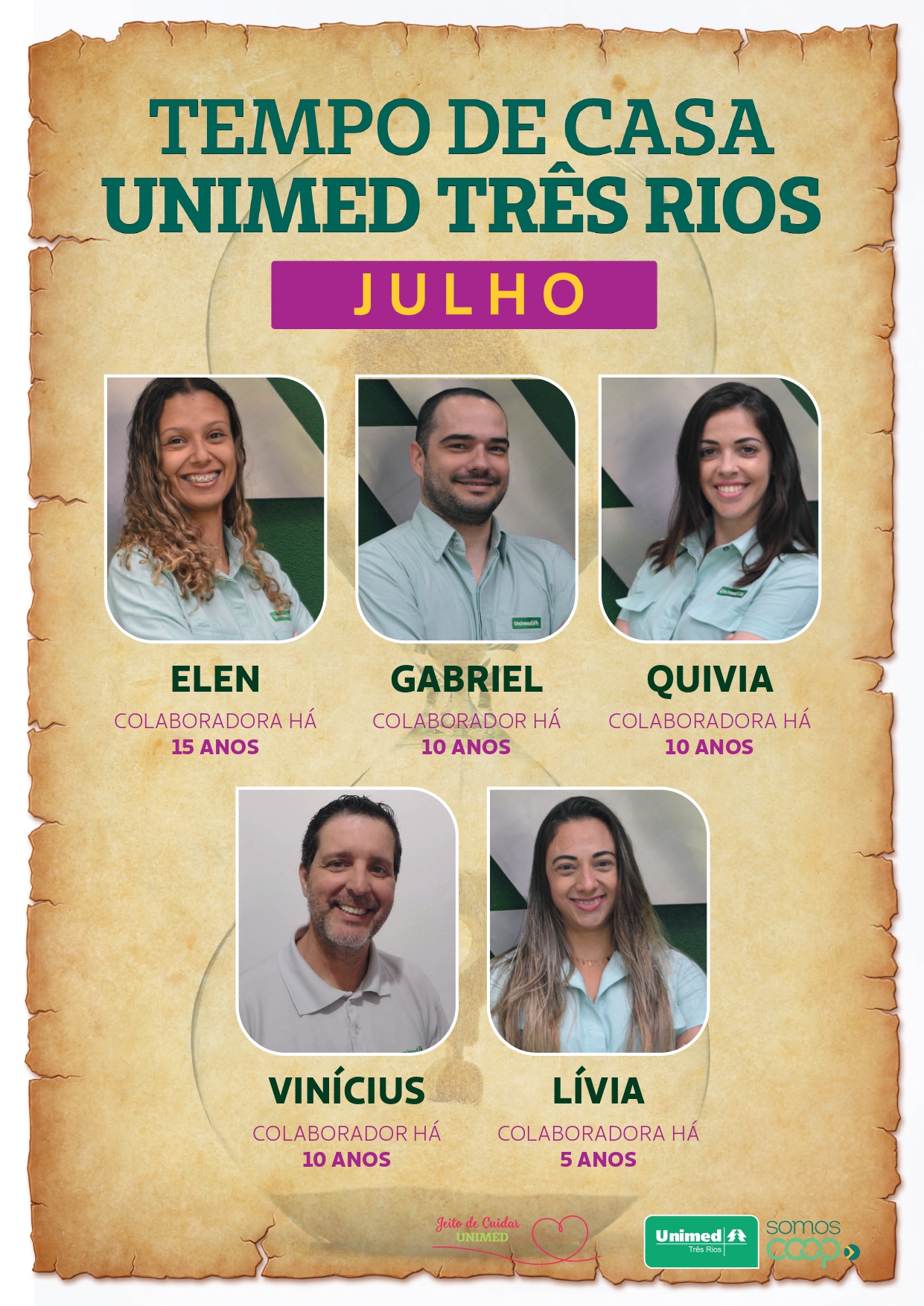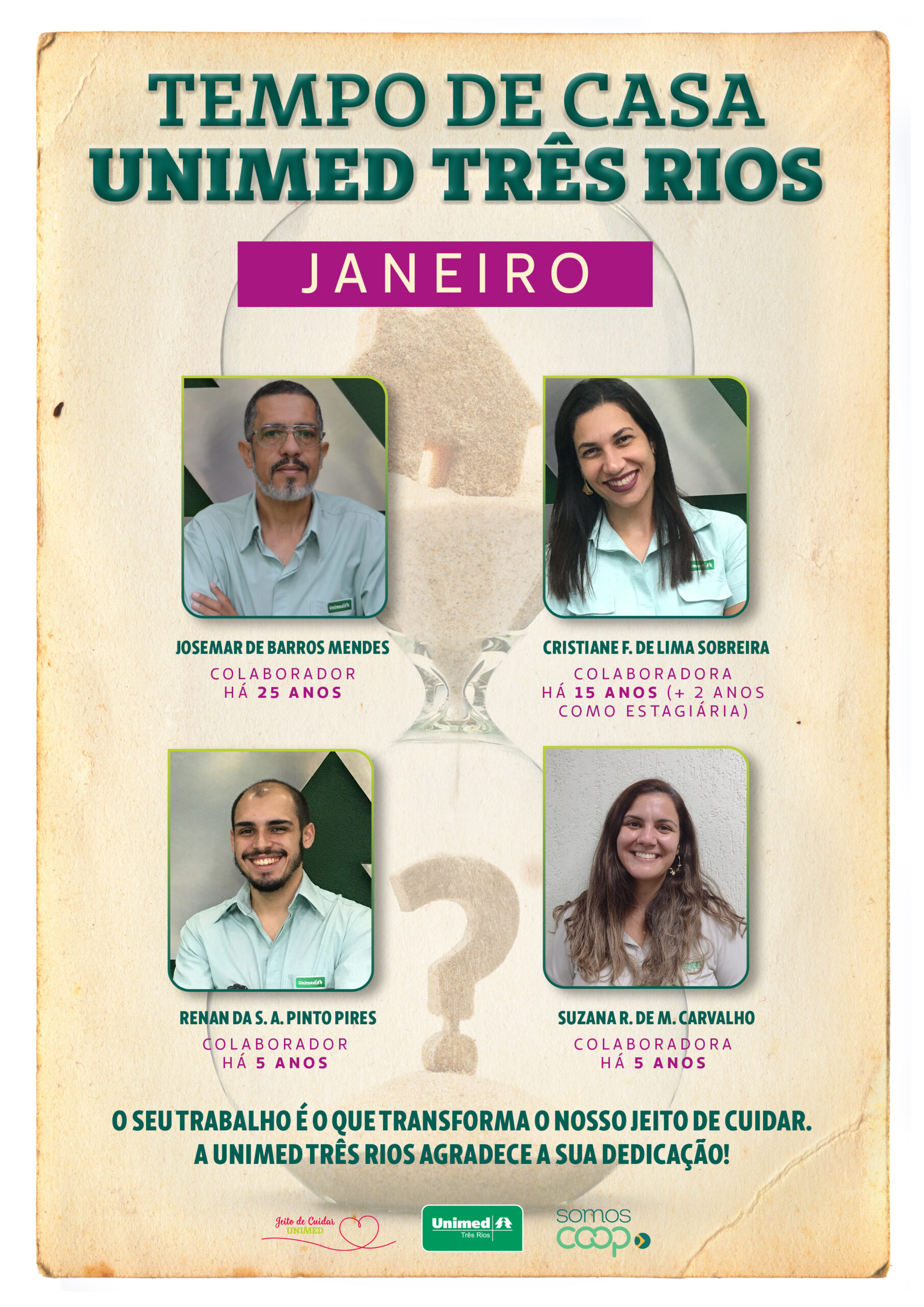 O Programa Tempo de Casa é um singelo reconhecimento pelos serviços prestados, parceria, comprometimento e dedicação aos profissionais que contribuem diariamente com o crescimento e fortalecimento da Unimed Três Rios.