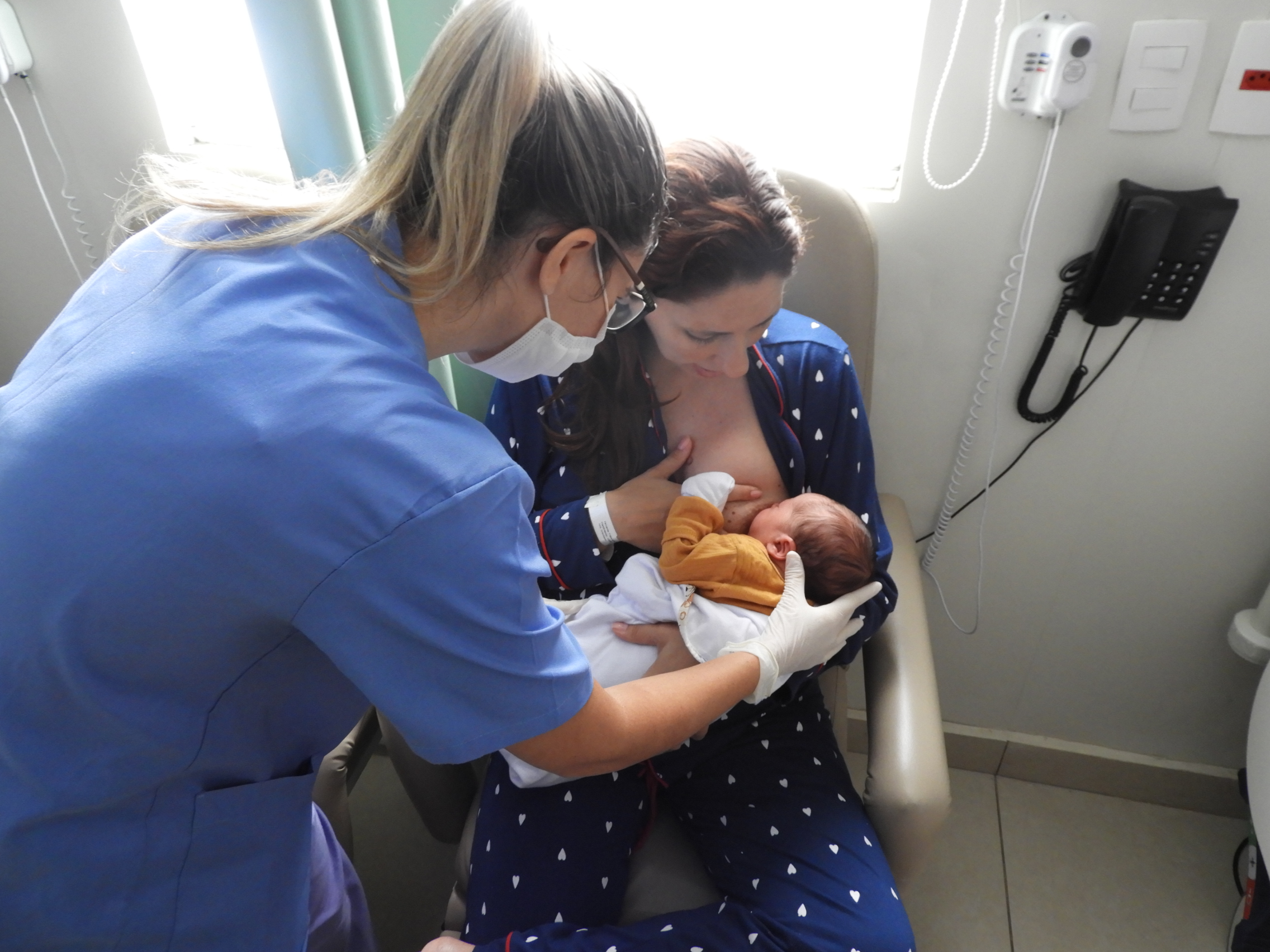 Elas foram aos apartamentos, observaram a mamada, auxiliaram na pega correta e entregaram um kit com garrafinha de água e mix de castanhas, para lembrar a importância da boa alimentação, além de um folder com instruções.