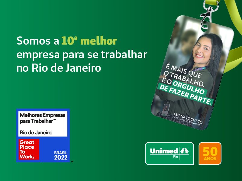 Há mais de 12 anos, a Unimed-Rio conquista o top 10 da pesquisa da consultoria Great Place to Work. A pesquisa avaliou pontos como benefícios, autonomia, clima organizacional, transparência na gestão, remuneração e orgulho de fazer parte da organização.