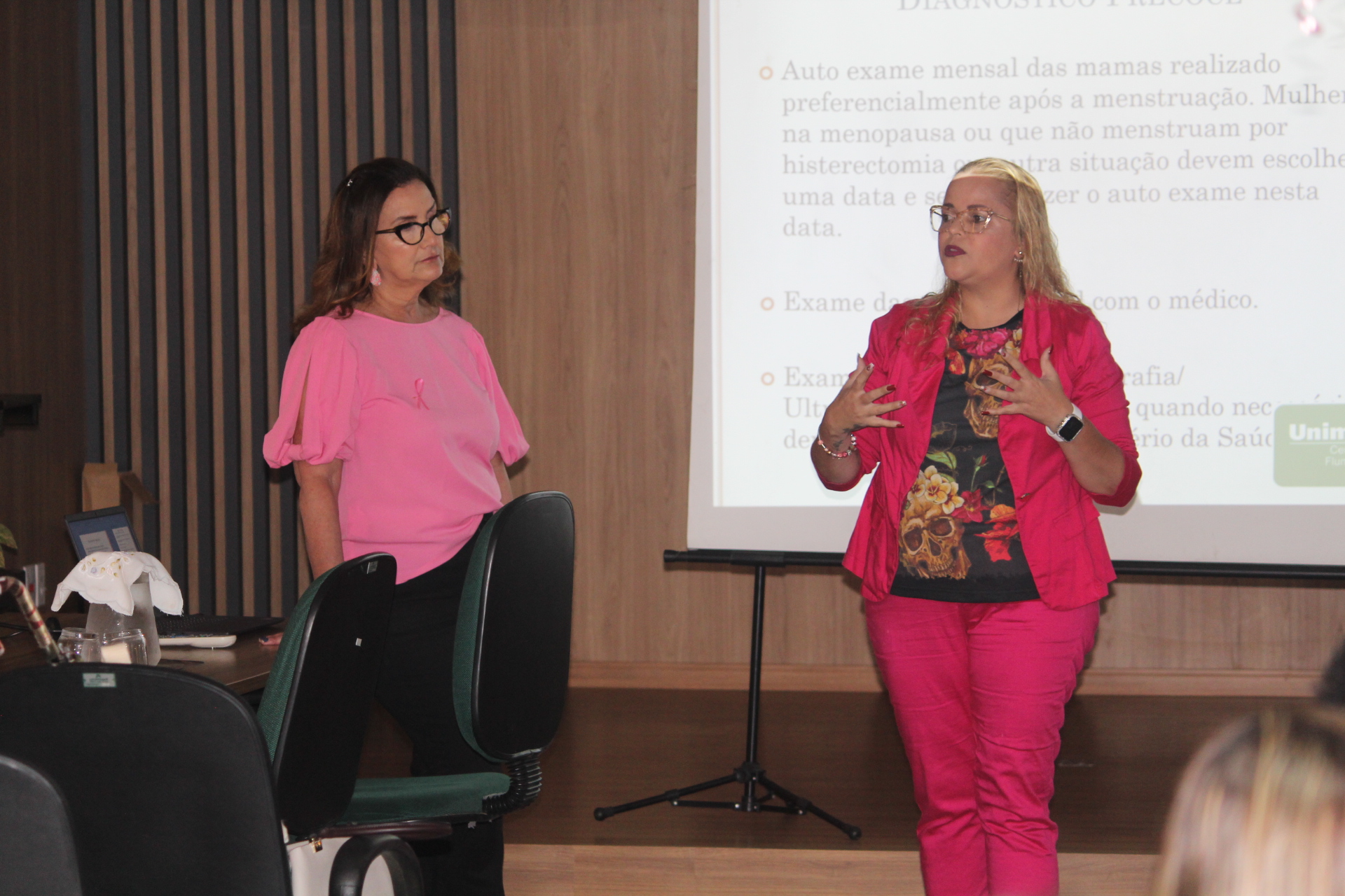 Em campanha, a Unimed Centro Sul Fluminense convidou a ginecologista Simonne Cunha para falar sobre o tema, na sede administrativa. A palestra abordou sobre a doença, suas causas, fatores de risco, aspectos da vida reprodutiva/hormonais, hereditários/genéticos e diagnóstico precoce e rastreamento da doença. “Quando o câncer de mama é descoberto no início, há mais chance de cura”, explicou Cunha.
