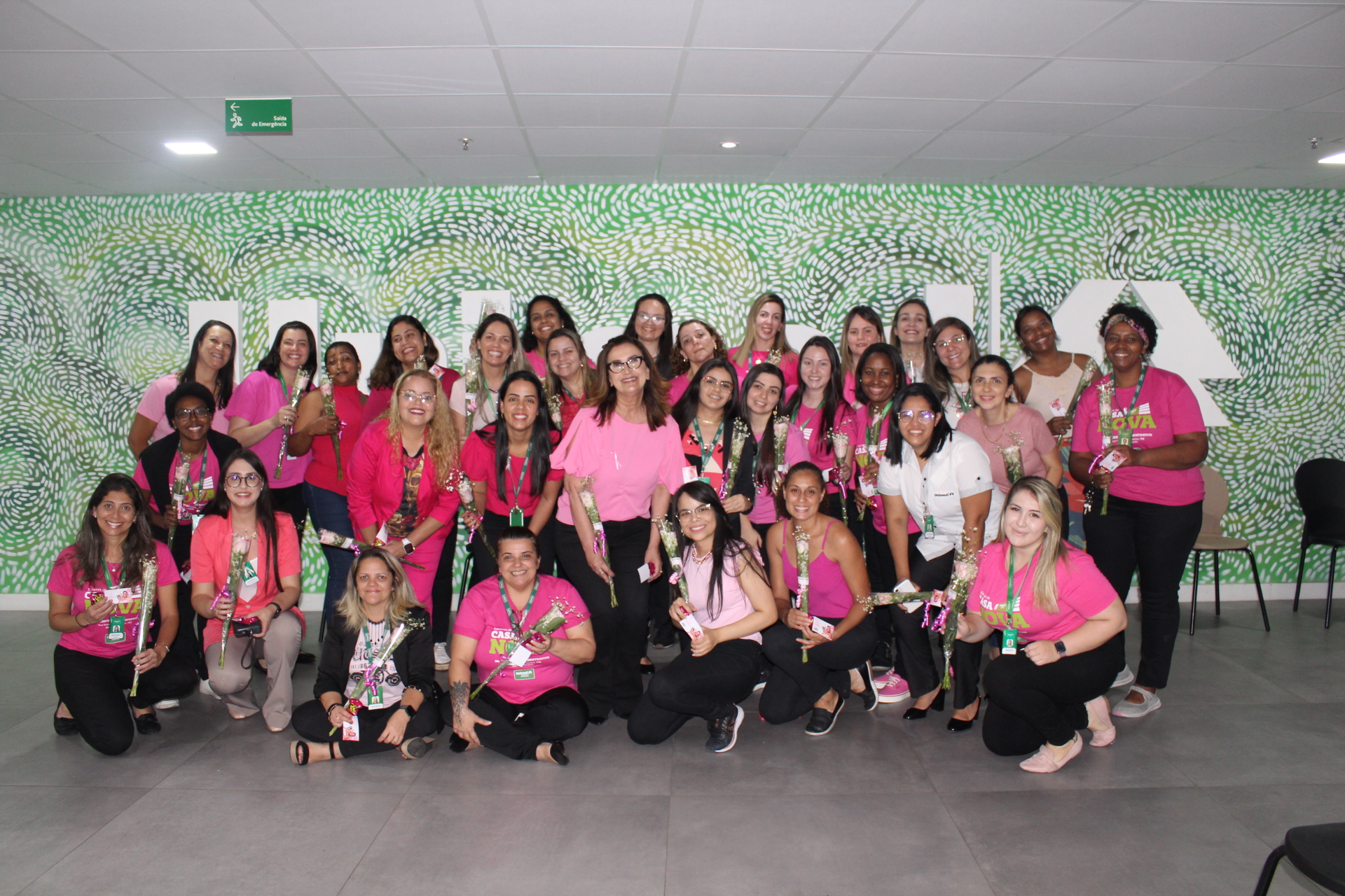 A médica apresentou uma convidada especial, a paciente Tatiane Almeida, que compartilhou com as colaboradoras sua experiência com o câncer de mama. Tatiane se emocionou ao falar sobre sua história e reforçou o quão importante foi a prevenção, já que descobriu cedo e conseguiu realizar o tratamento de forma preventiva, curando a doença.