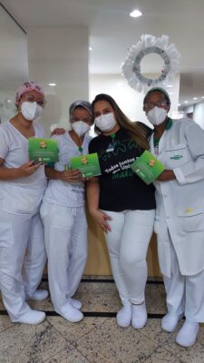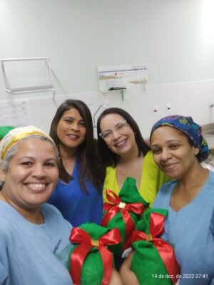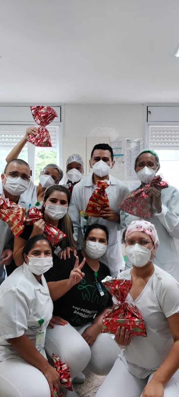 A coordenadora de Enfermagem da cooperativa, Andrea Aguiar, mesmo em suas férias, também presenteou sua equipe com chocotones e enfeitou as embalagens com carinho, um gesto que deixaram todos muito felizes com a iniciativa.
