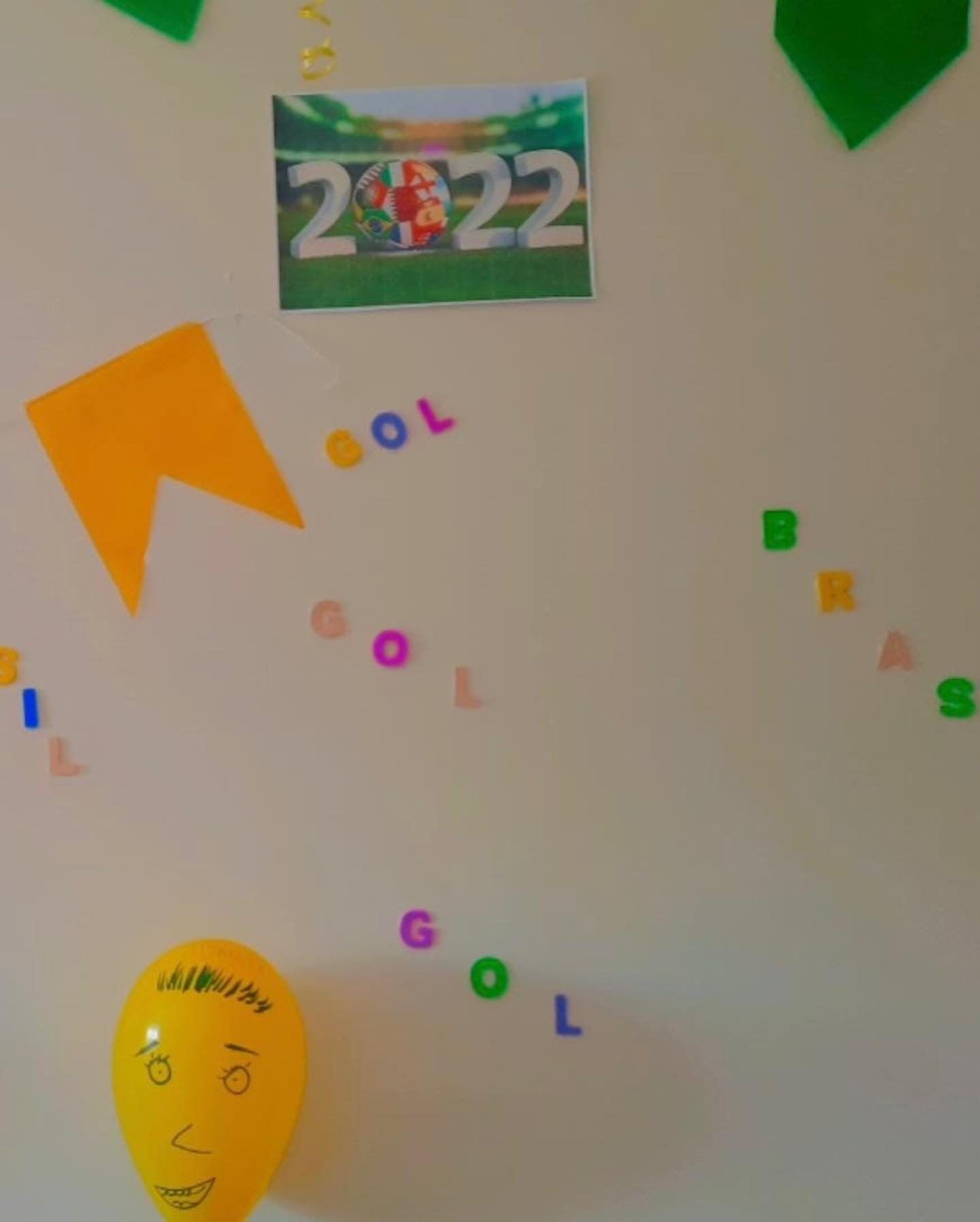 Com direito a bolas, serpentinas, quadros, camisa e bandeira do Brasil, o Adrian aguarda ansioso a estreia da seleção brasileira.