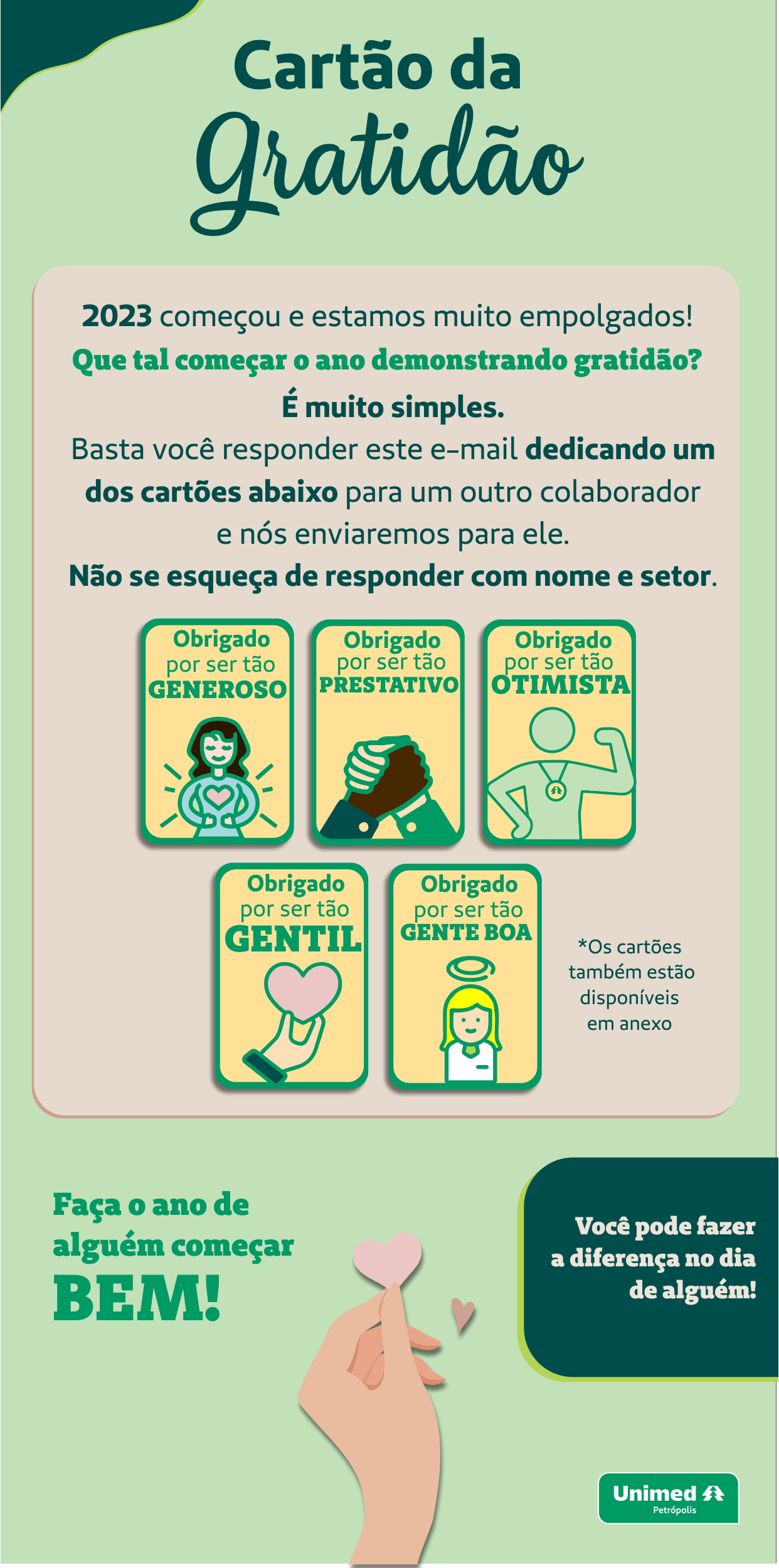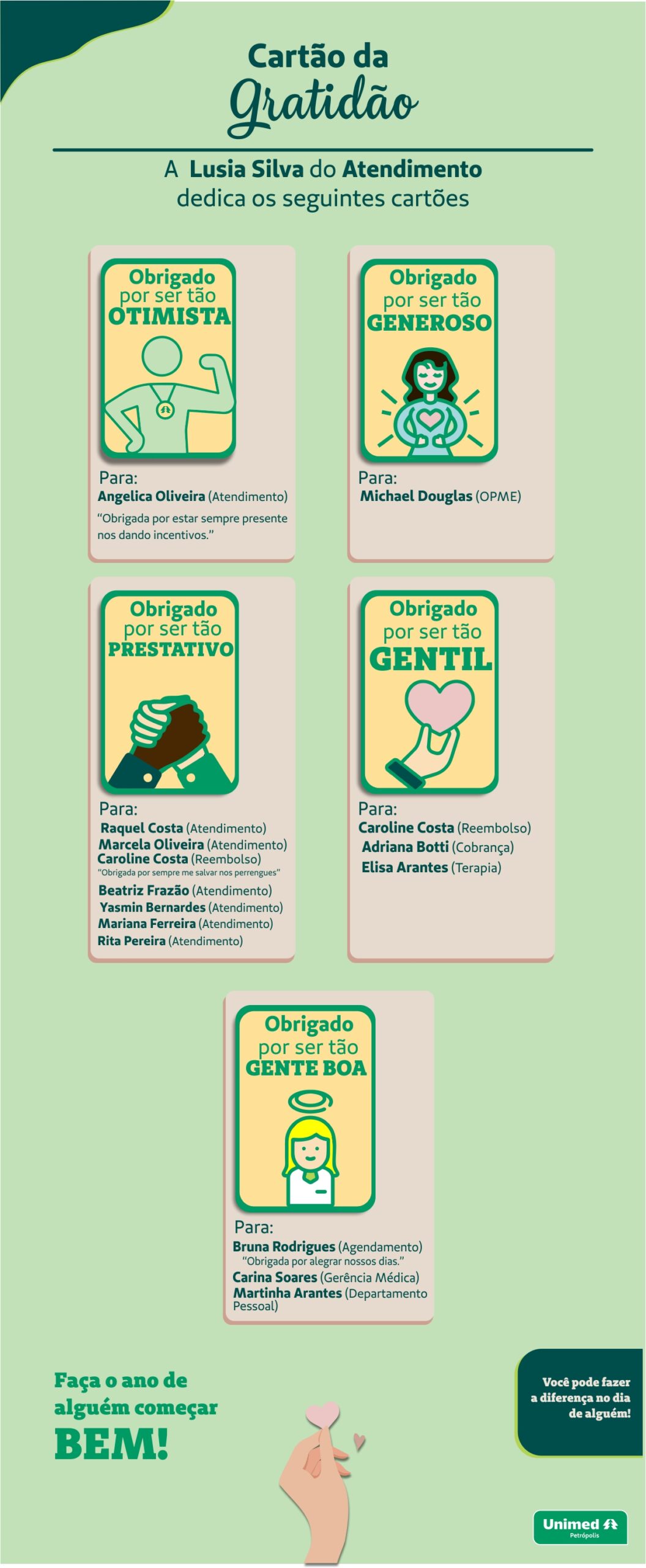 Em comemoração ao Dia da Gratidão, celebrado no dia 6 de janeiro, a Unimed Petrópolis realizou uma ação entre seus colaboradores.