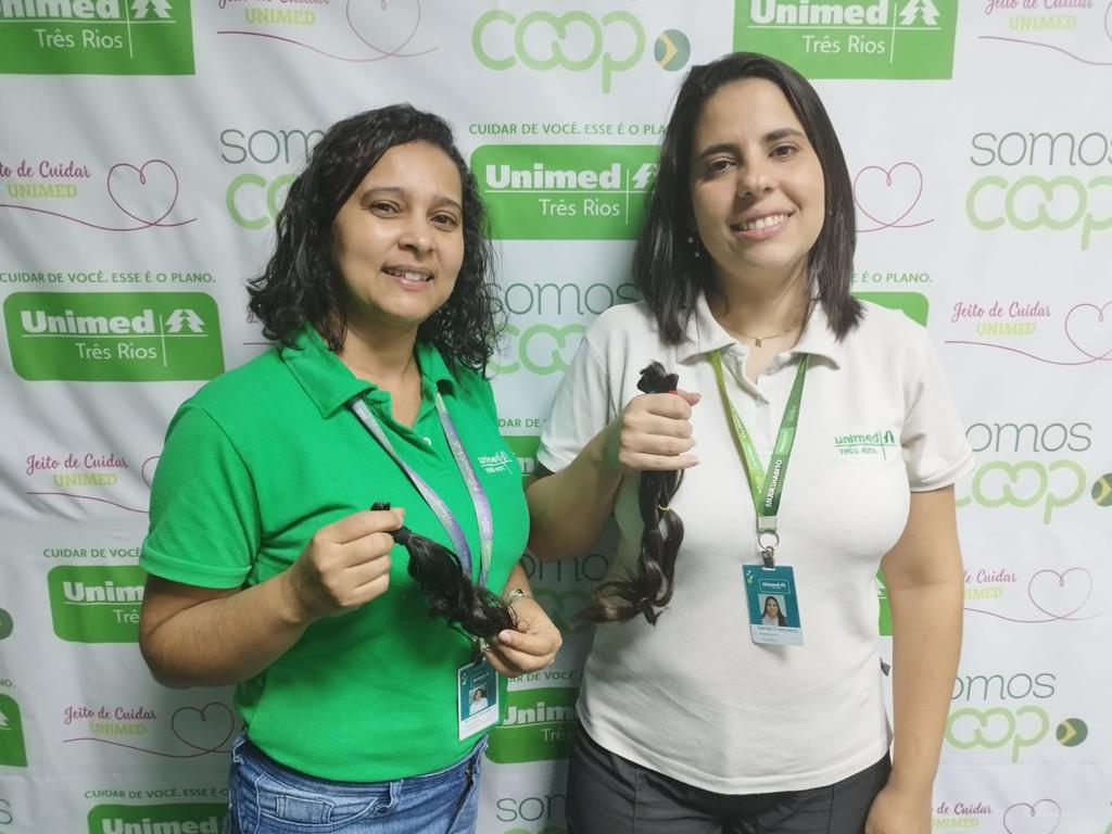 Em janeiro, as colaboradoras da Unimed Três Rios, Michele Macedo e Renata Francesco, doaram mechas de cabelo para o Projeto Fios Maravilha, uma ação da cooperativa, em parceria com a ONG Cabelegria. A iniciativa, que teve início em 2017, tem como objetivo resgatar a autoestima e levar conforto para quem esteja em tratamento quimioterápico, através da doação mechas para a produção de perucas. A cooperativa é responsável por divulgar o projeto e fazer a recepção dos fios e a ONG pela confecção e distribuição das perucas.