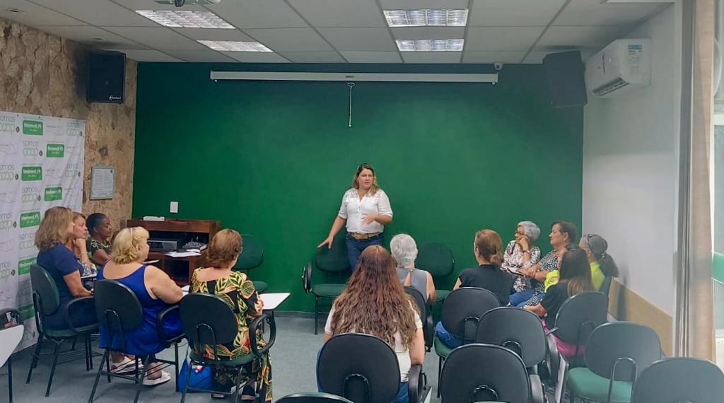 As participantes do Programa “Viver Bem Saúde do Idoso”, da Unimed Três Rios, assistiram a uma palestra e puderam conversar com a fisioterapeuta Deise Kopke sobre o autocuidado na terceira idade. A iniciativa fez parte da comemoração do Dia Mundial da Saúde, que aconteceu no dia 7 de abril.