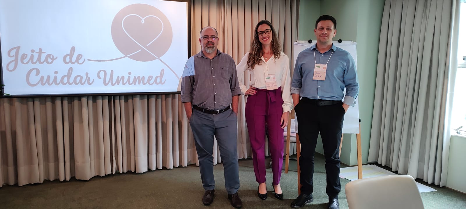 O gerente do hospital, Leonardo Lima, o coordenador de Qualidade, Glauber Ceolin, e a líder de Relacionamento com o Cliente, Mariana Fuzessy, se tornaram multiplicadores do novo modelo de gestão na cooperativa, com a responsabilidade de disseminar os aprendizados obtidos no treinamento.