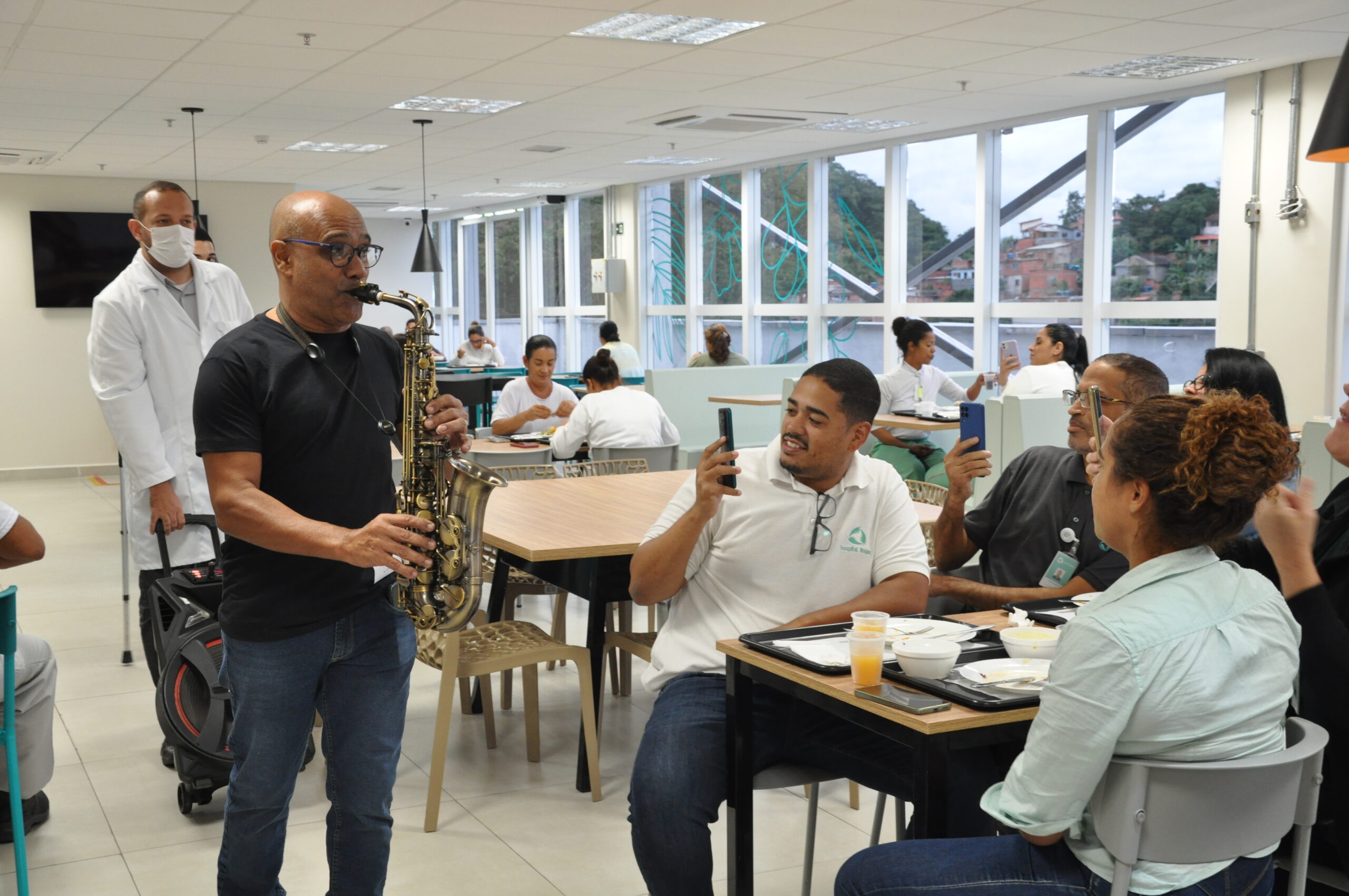 Aconteceu, no dia 28 de abril, no Hospital Itaipu, a ação de humanização ‘Música no Hospital”, promovida pela equipe assistencial da Unimed Leste Fluminense de psicologia hospitalar e enfermagem, que contou com a visita do musicista/saxofonista Rogério Silva.