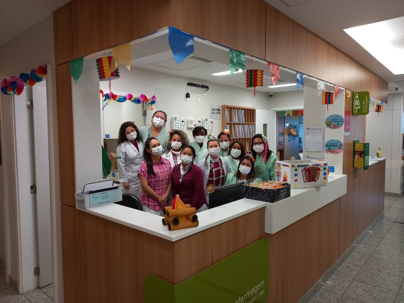 Quadrilha, cachorro-quente, pipoca, pescaria e tudo que um arraiá de respeito pode ter. As crianças da pediatria do Hospital Unimed-Rio tiveram uma tarde de diversão e carinho, no dia 23 de junho, véspera do Dia de São João, quando foi realizada uma festinha junina no setor. Acompanhados de seus familiares, os 12 pequenos pacientes que participaram da ação encontravam-se internados há semanas. Alguns deles, há meses, o que torna momentos como esses fundamentais para o processo de recuperação clínica.