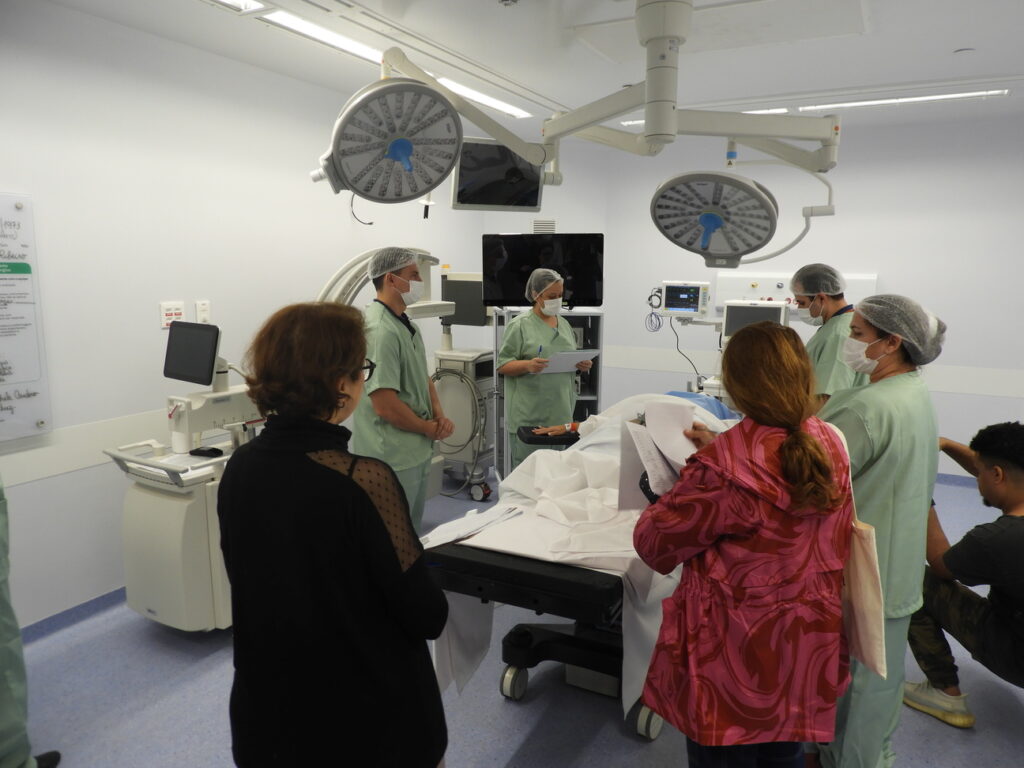 Foram reproduzidas todas as etapas do procedimento médico, desde a chegada do paciente com acompanhante, até o atendimento na recepção, passando pelo processo de internação até o centro cirúrgico, UTI e alta.