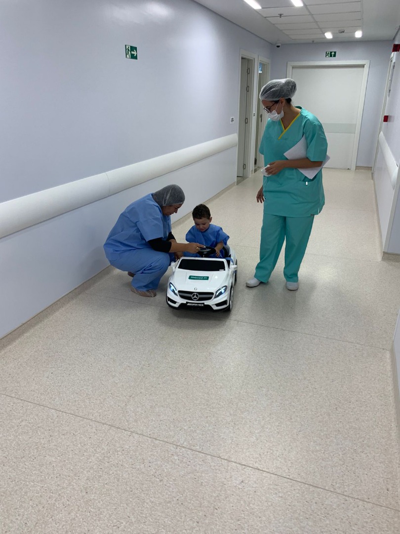 O Centro Cirúrgico agora conta com dois carrinhos elétricos para fazer o transporte das crianças, de um a cinco anos de idade, até a sala onde será realizado o procedimento. O objetivo é tornar o ambiente hospitalar mais acolhedor para que, tanto os pacientes, quanto os familiares, fiquem mais calmos e seguros.