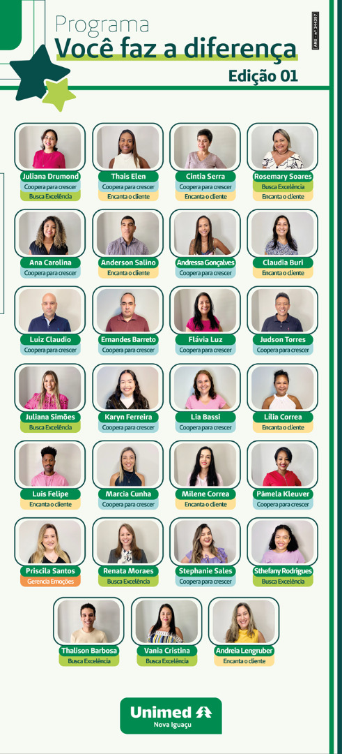 “A cooperativa está sempre inovando quando o assunto envolve pessoas. Neste importante programa queremos que os colaboradores identifiquem em seus colegas comportamentos estimulados pela organização, que comunguem com os negócios e estejam alinhados à essência Unimed”, observa o diretor Administrativo, Carlos Alberto Vianna.
