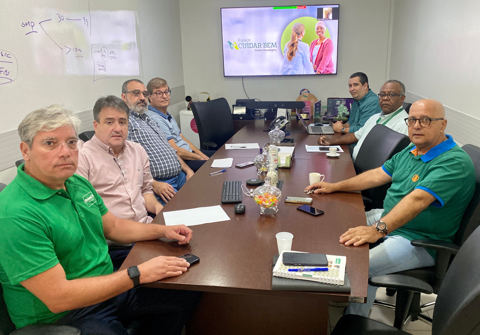 Em 17 de fevereiro, a Diretoria Executiva da Unimed Nova Iguaçu se reuniu com seus cooperados oncologistas, na sede administrativa, para definir o processo e a logística assistencial mais assertiva para os pacientes a serem atendidos no Espaço Cuidar Bem Centro Oncológico. A clínica é a maior e mais moderna no estado do Rio de Janeiro e é a única na Região da Baixada Fluminense a contar com a Touca de Crioterapia, equipamento capaz de reduzir a queda capilar em alguns tratamentos quimioterápicos.