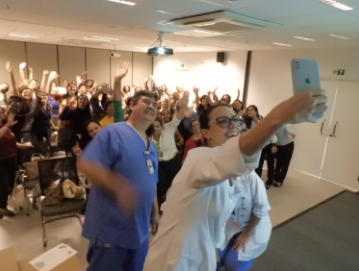 Como forma de estimular o cuidado com a saúde, a equipe da Fisioterapia realizou uma sessão de alongamentos e ginástica laboral. Em poucos minutos, eles demonstraram que é possível fazer exercícios simples para movimentar o corpo e reduzir incômodos comuns, como dores e fadiga.