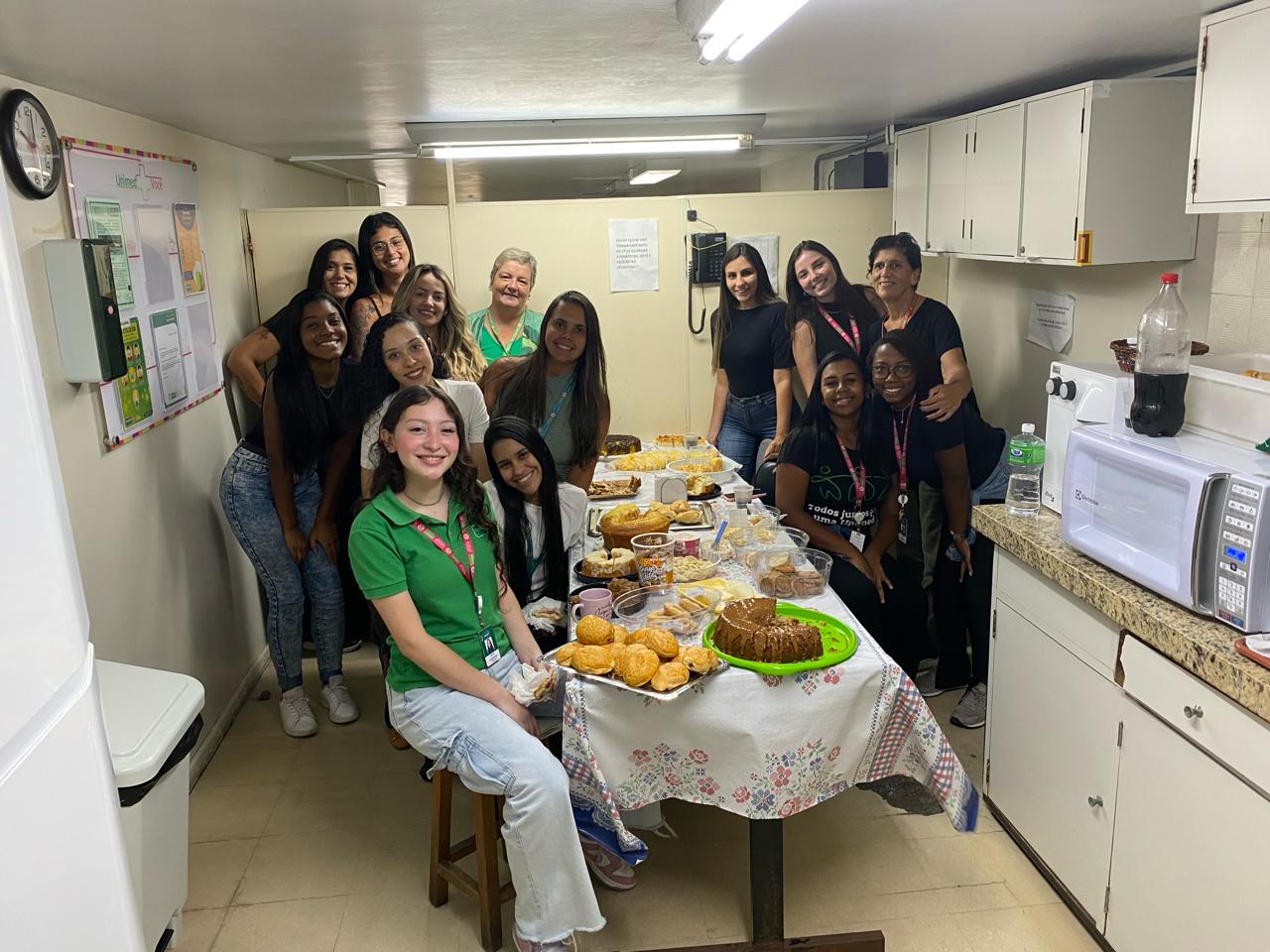 As colaboradoras da Unimed Petrópolis se reuniram e organizaram um café da manhã especial em comemoração ao Dia Internacional da Mulher.