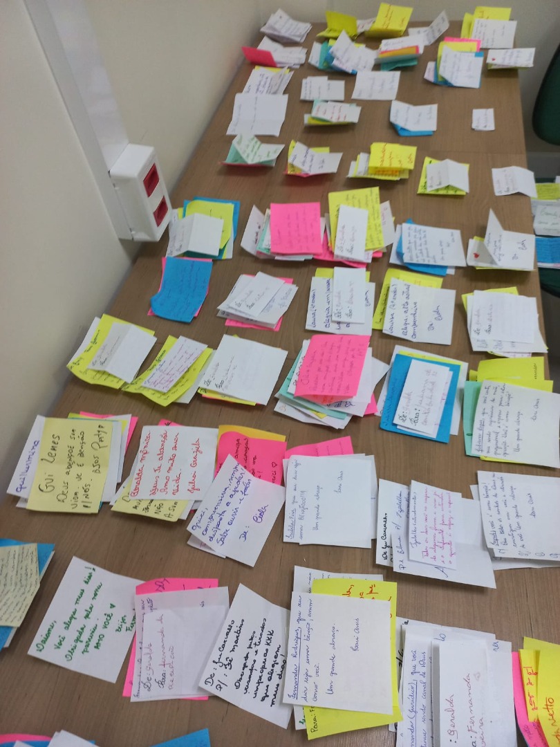 Durante esse período, incentivamos que cada uma deixasse recadinhos para suas colegas de trabalho, valorizando suas qualidades, talentos e contribuições para a equipe. Essa prática fortaleceu os laços de companheirismo, incentivou a valorização mútua e criou um ambiente de trabalho positivo e colaborativo. A troca de elogios e mensagens de reconhecimento contribuiu para o aumento da autoestima e motivação das colaboradoras, promovendo respeito mútuo no ambiente de trabalho.