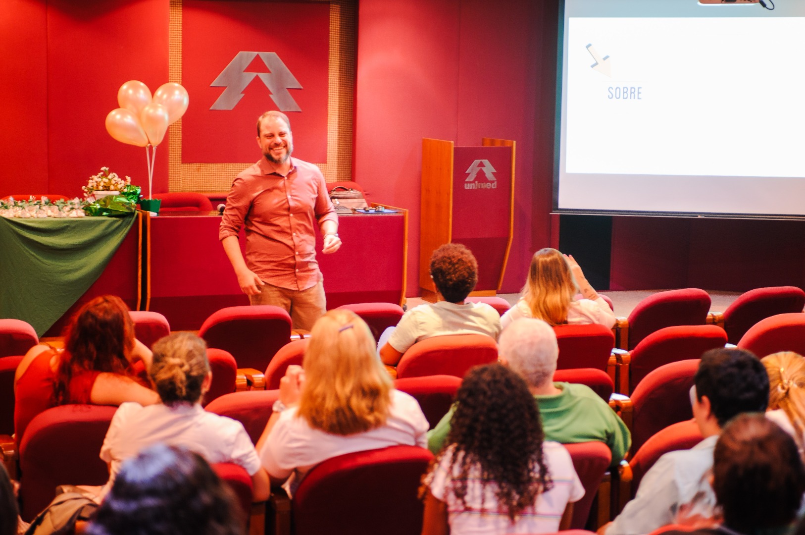 No dia 3 de maio, o Dia do Colaborador foi comemorado na Unimed Norte Fluminense com palestras no tema “Saúde do trabalhador: um enfoque psicossocial” e pequenos mimos para os colaboradores. O psicólogo, Matheus Garcia (foto) falou para os colaboradores da operadora, e a psicanalista Kamila Hetch, palestrou para as colaboradoras do Núcleo de Terapias Especiais.
