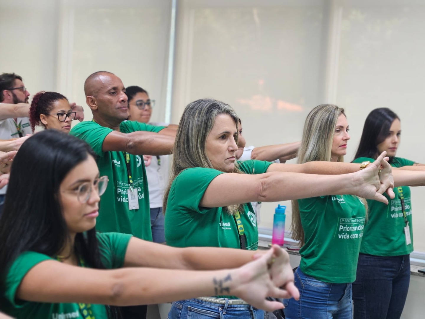 No primeiro dia, o fisioterapeuta Carlos Henrique compartilhou dicas de ergonomia com nossos colaboradores e, junto ao time da CIPA, visitou os andares da unidade para conduzir sessões de ginástica laboral, garantindo um ambiente de trabalho mais seguro e saudável.