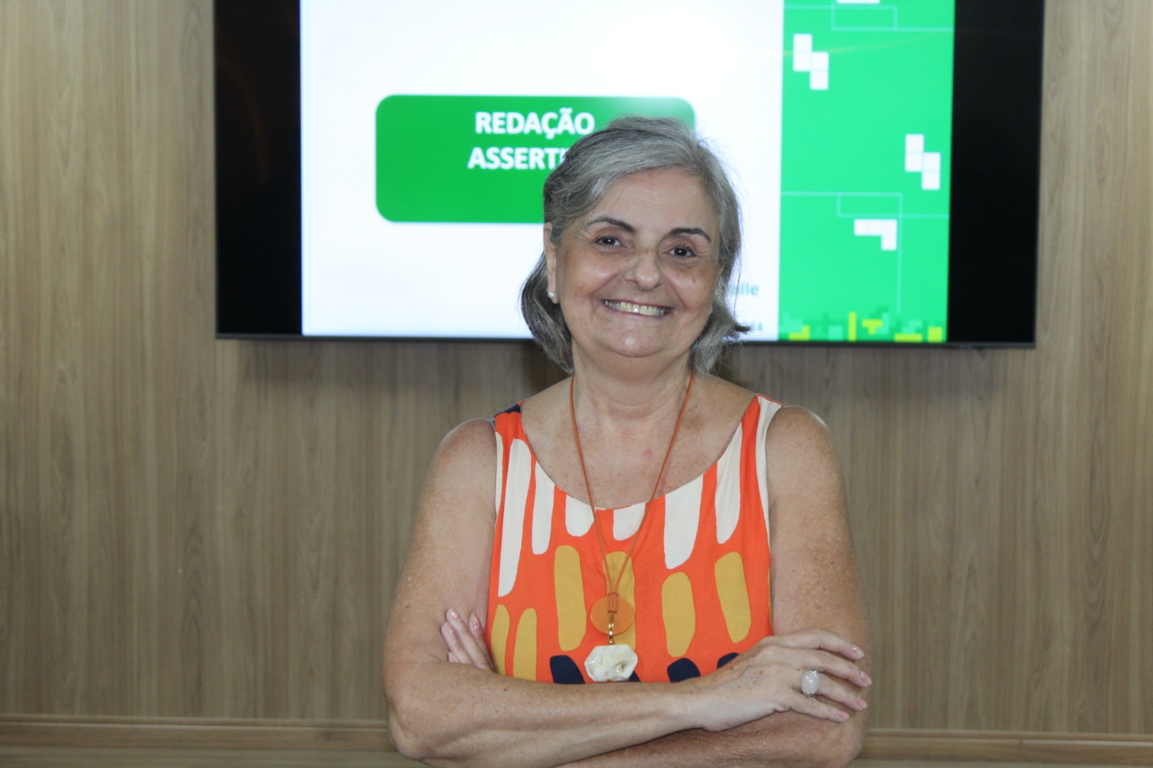 Professora compartilha conhecimento sobre gramática e interpretação de texto