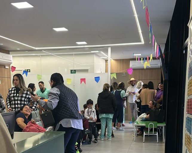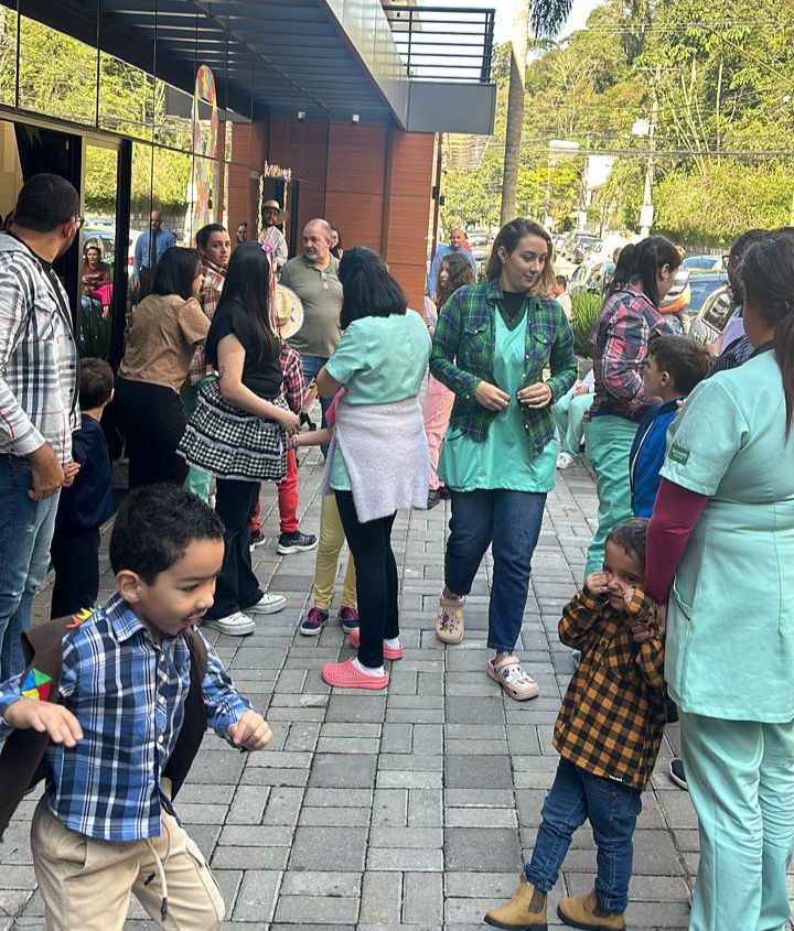 O tradicional uniforme deu espaço ao quadriculado e ao chapéu de palha. A clínica foi decorada com bandeirinhas coloridas, o que criou um ambiente descontraído, acolhedor e festivo, que encantou os presentes. As atividades foram marcadas por dança, brincadeiras e animação.