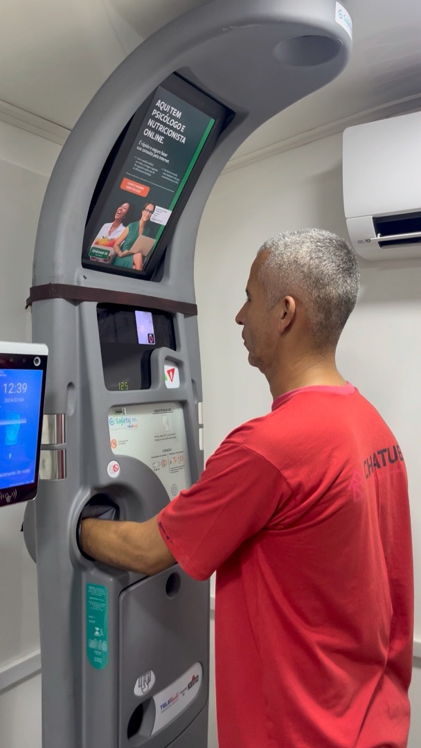 Na cabine estão sendo realizadas aferições da pressão arterial, temperatura, cálculo de IMC (peso e altura) e percentual de gordura, consulta médica online, além da coleta de exames laboratoriais, quando solicitados na consulta remota. Profissionais do Núcleo de Atenção à Saúde (NAS) também acompanham o serviço e estão à disposição para tirar dúvidas.