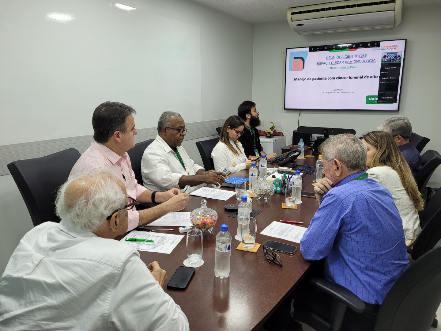 As apresentações foram conduzidas pela responsável técnica do Centro Oncológico, Oncologista clínica e Oncogeneticista, Lívia Moura, que falou sobre o “Manejo da paciente com câncer luminal de alto risco”, e pelo cooperado Mastologista, Ricardo Chagas, que abordou a temática “A indicação do esvaziamento axilar”.