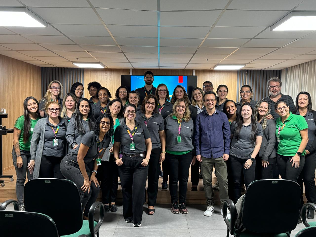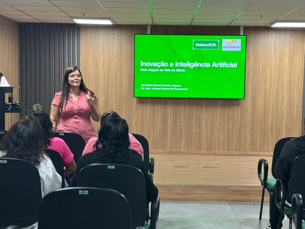 Nos dias 11 e 24 de outubro, a Unimed Centro Sul Fluminense promoveu palestras sobre saúde mental e Inteligência Artificial (IA) para os colaboradores. O primeiro encontro foi conduzido pela diretora Administrativa da operadora, Ana Paula Simões, abordou a IA, desmistificando a tecnologia e apresentando suas diversas aplicações no dia a dia. A palestrante enfatizou a importância de estar preparado para a nova realidade e de saber utilizar as ferramentas de IA a favor da produtividade e da tomada de decisões.