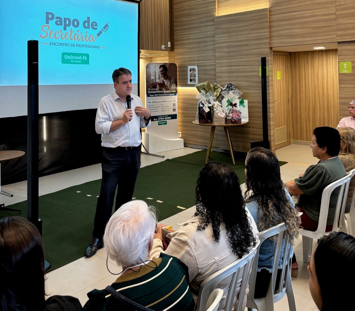 Um dia repleto de conhecimento, troca de experiências e networking pautou o 1º Papo de Secretárias, evento que reuniu profissionais do secretariado dos médicos cooperados da Unimed Nova Iguaçu, no dia 04 de outubro, no hall do futuro hospital da cooperativa. Informações sobre o cooperativismo, números do Sistema Unimed no Brasil, desafios da saúde suplementar e diferenciais da rede de serviços próprios nortearam a abertura conduzida pelo presidente, Joé Sestello. Também estiveram presentes o vice-presidente, Jorge Luiz Andrade e os diretores Econômico-Financeiro, Christian Ferreira, e Administrativo, Carlos Alberto Vianna, que falaram sobre temáticas específicas, além da equipe técnica dos principais setores.