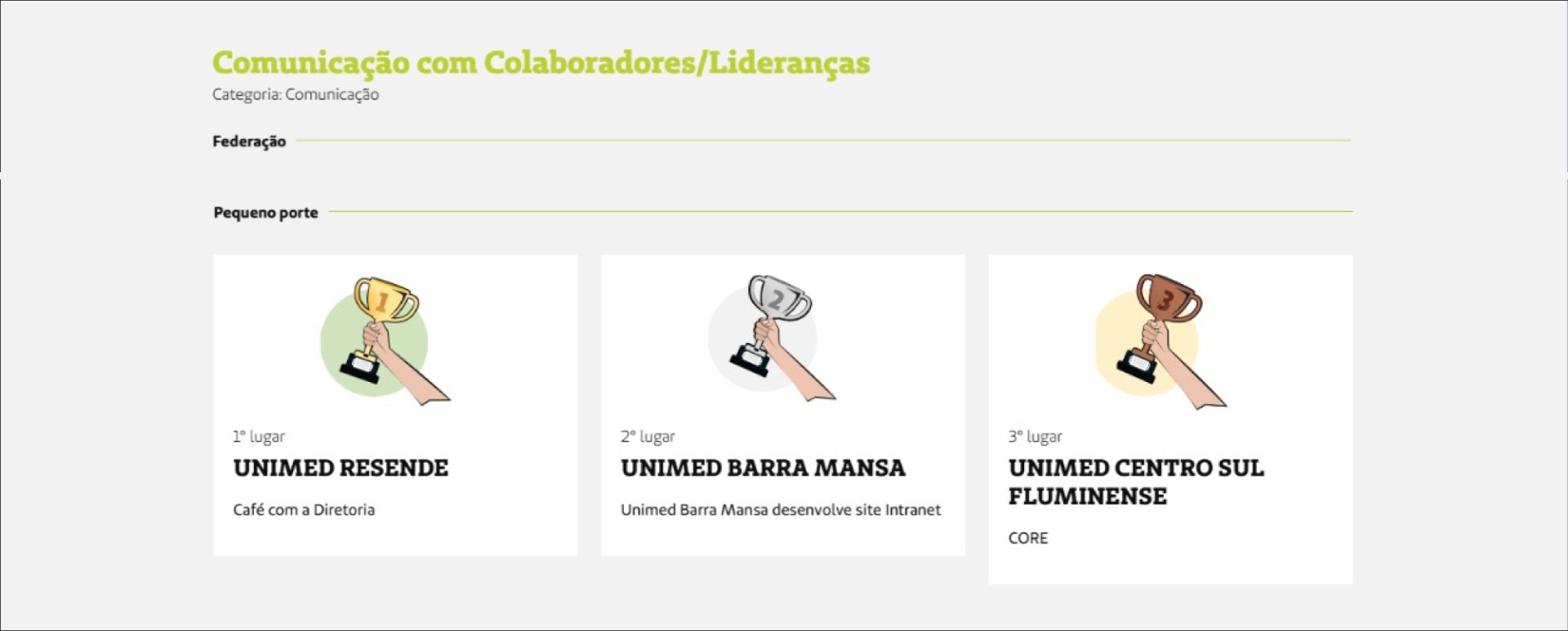 Em agosto, a Unimed do Brasil apresentou o prêmio de Comunicação e Marketing, direcionado para todas as Unimeds do estado. A premiação foi realizada no 4ª edição do Encontro da Marca, Mercado e Experiência do Cliente, que aconteceu nos dias 25 e 26 de novembro, em São Paulo. Na ocasião, a Unimed Barra Mansa recebeu o 2° lugar na categoria “Comunicação com o colaborador”, com a Intranet, canal oficial entre os colaboradores.