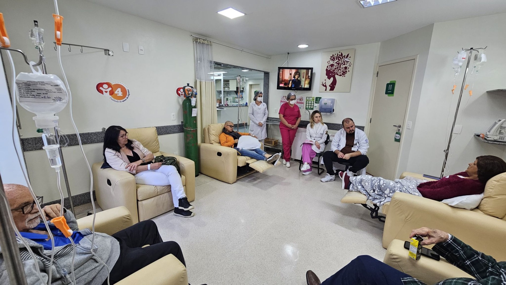 Para as pacientes, ocorreu uma roda de conversa com o psicólogo Cristyann Fillyp e com a nutricionista da Oncologia do hospital, Amanda Zambelli, que discutiram sobre o tema: “A importância do acompanhamento nutricional e psicológico para o paciente oncológico”. O clima no setor foi de empatia e solidariedade, onde Fillyp abordou os desafios emocionais que muitos pacientes enfrentam, enquanto Zambelli destacou como uma boa alimentação pode fazer diferença no tratamento. Os participantes também puderam tirar suas dúvidas e compartilhar histórias pessoais na ocasião.