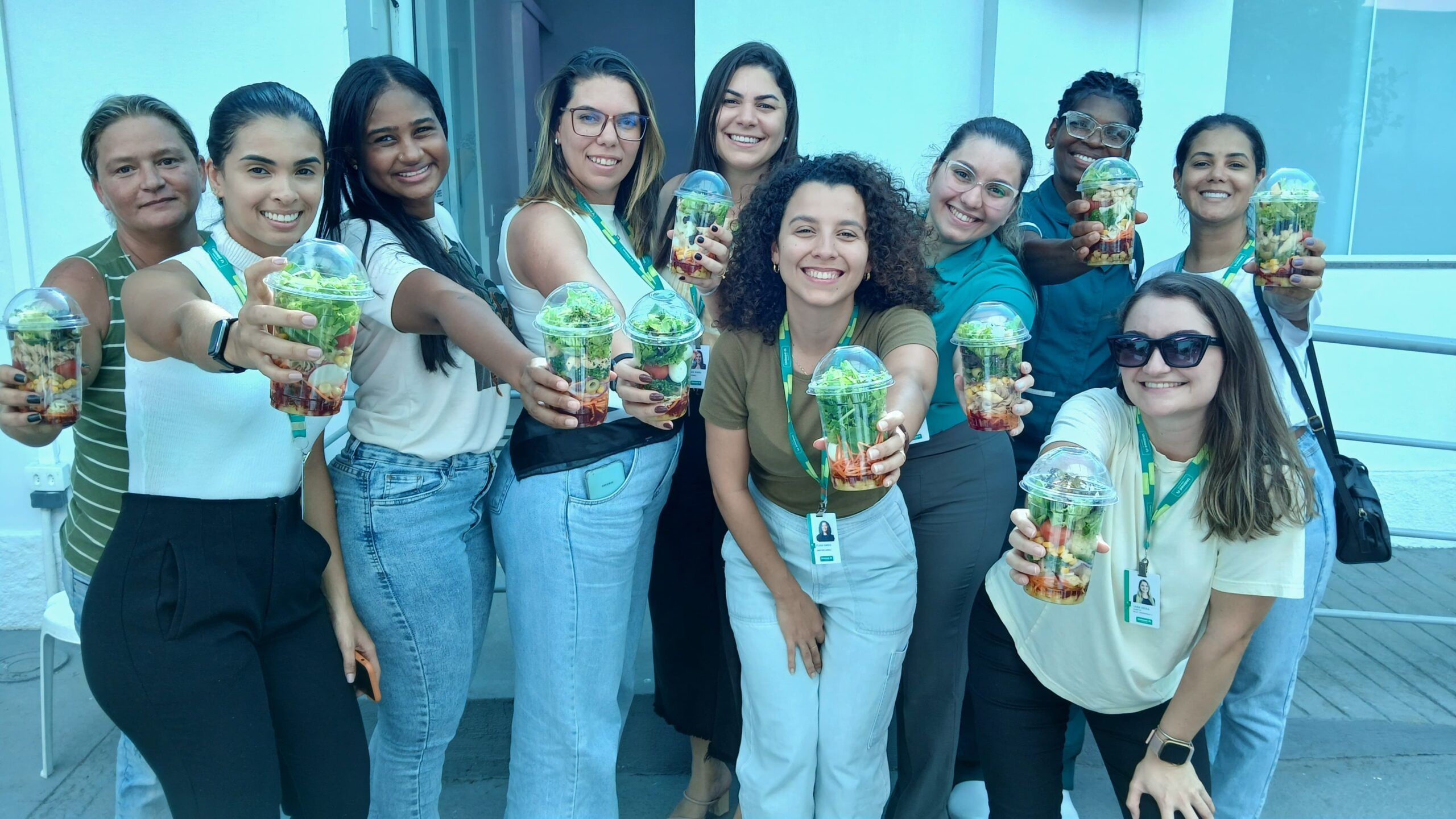 Durante as atividades, os colaboradores tiveram a oportunidade de aprender sobre a preparação de deliciosas saladas no pote. A iniciativa destacou a importância da alimentação pré-planejada, principalmente para aqueles que possuem um curto período para almoçar.