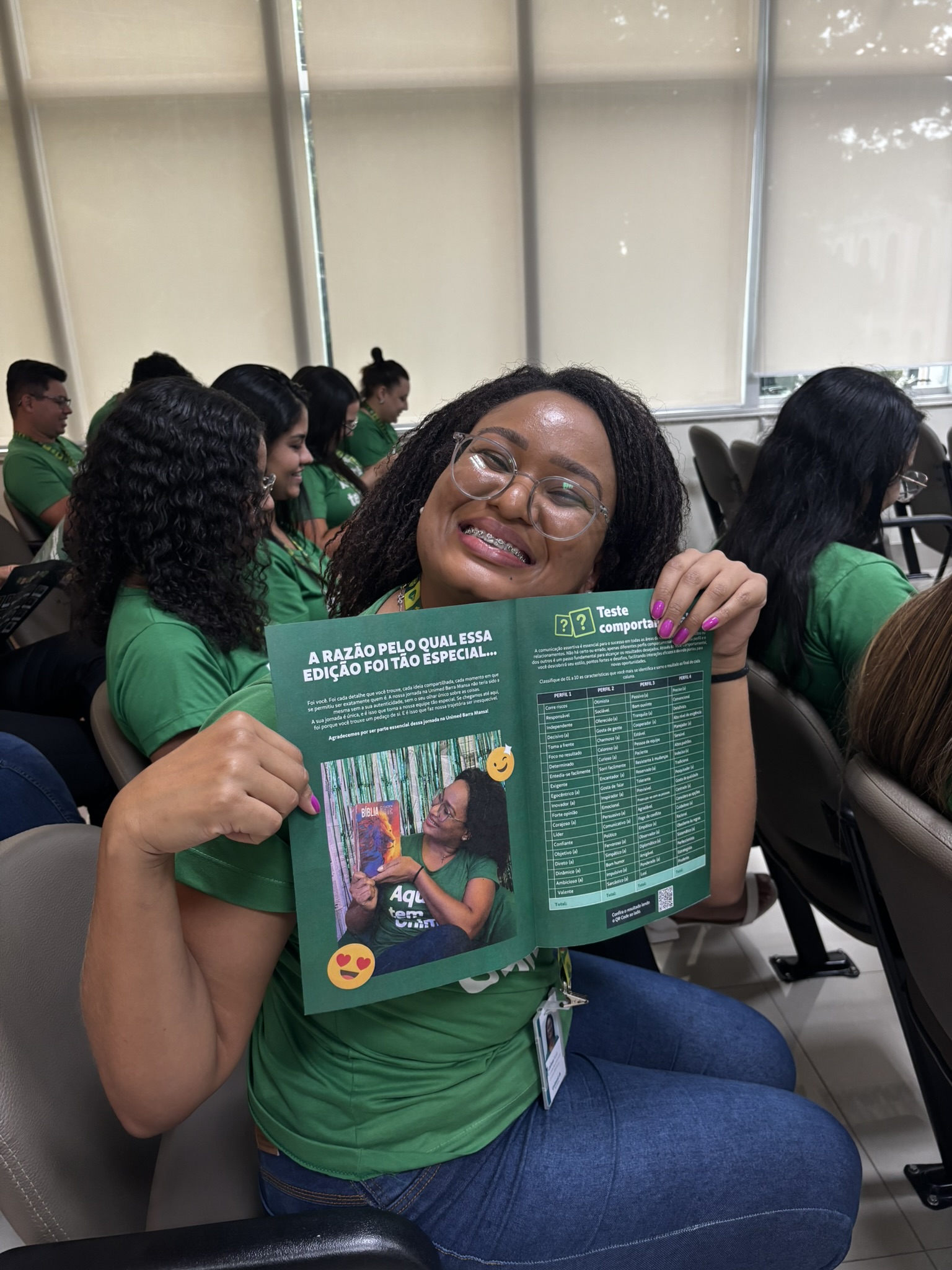 Além disso, foram reunidos os colaboradores que comemoram o anuênio de cada mês para uma sessão de fotos digna de capa de magazine. A revista “Gerações” incluí teste de perfil comportamental, a Playlist Gerações e o “Tá sabendo?” convidando o colaborador a acessar a Intranet e se atualizar sobre o que está acontecendo na cooperativa.
