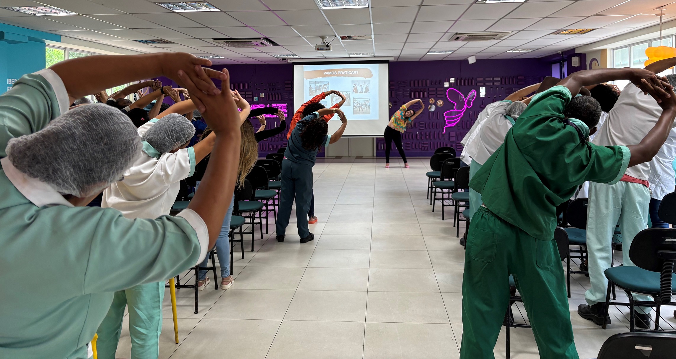 Com o objetivo de promover qualidade de vida e bem-estar aos colaboradores da Embelleze, a fisioterapeuta e coordenadora interina do Núcleo de Atenção à Saúde (NAS) da Unimed Nova Iguaçu, Michelle Calado, conduziu uma série de atividades entre os dias 9 e 11 de abril. A programação, que incluiu uma palestra sobre prevenção de acidentes de trabalho e sessões de ginástica laboral, foi realizada em três unidades da empresa — sede administrativa, centro de distribuição e fábrica. Cerca de 200 colaboradores participaram e se beneficiaram das ações.