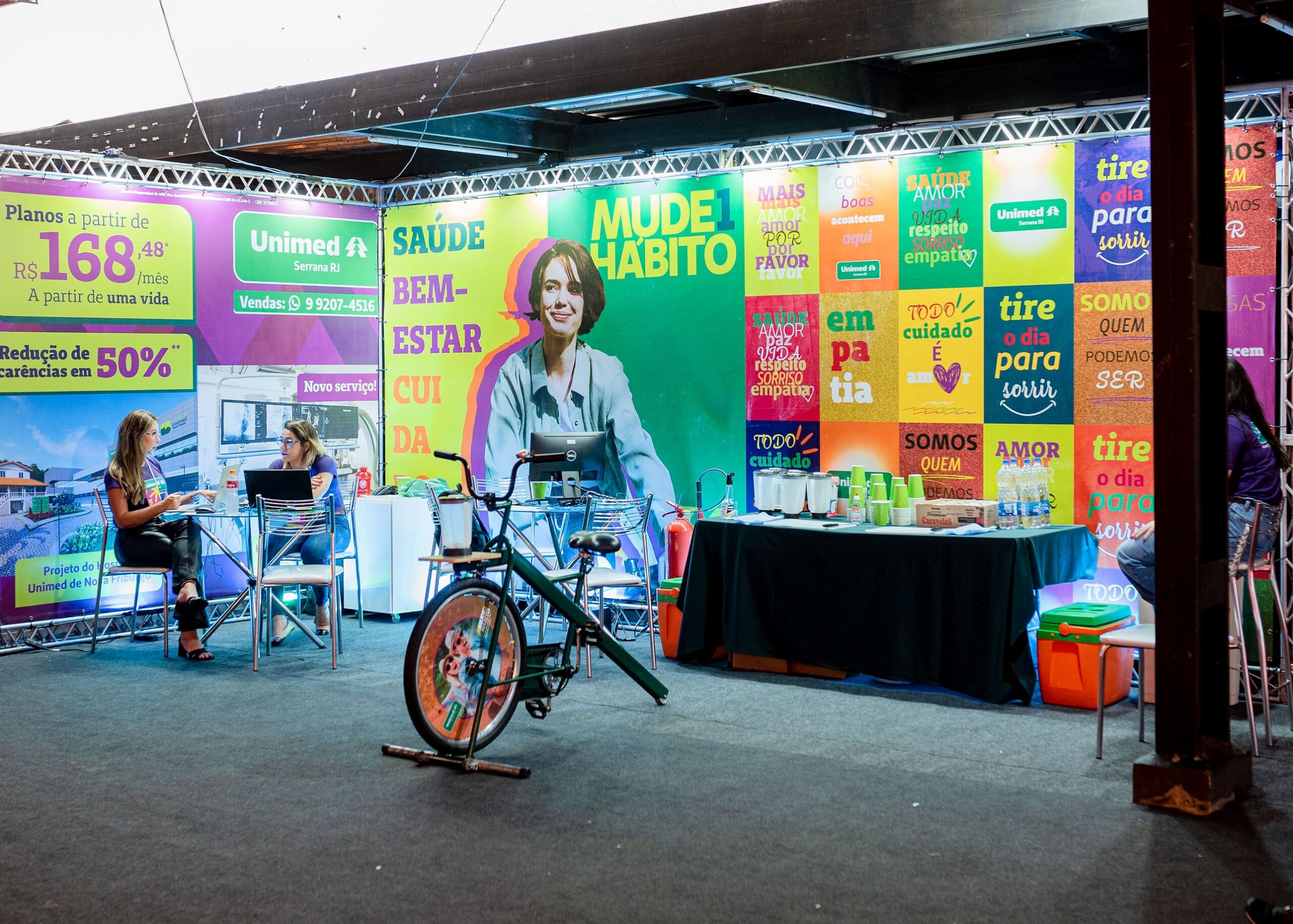 Durante a feira, a cooperativa realizou ações voltadas à promoção da saúde e bem-estar. O destaque do encontro foi a ativação do movimento Mude1Hábito, com a bike suco. No fim de semana, a arena gamer Unimed movimentou o estande, com jogos de realidade virtual, incentivando lazer e movimento. Além das atividades, a operadora também ofereceu uma condição especial durante a feira: a redução de 50% das carências.