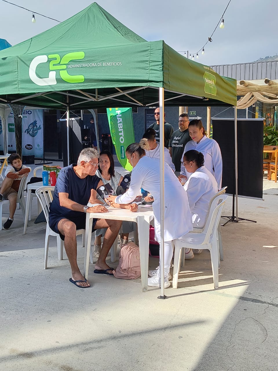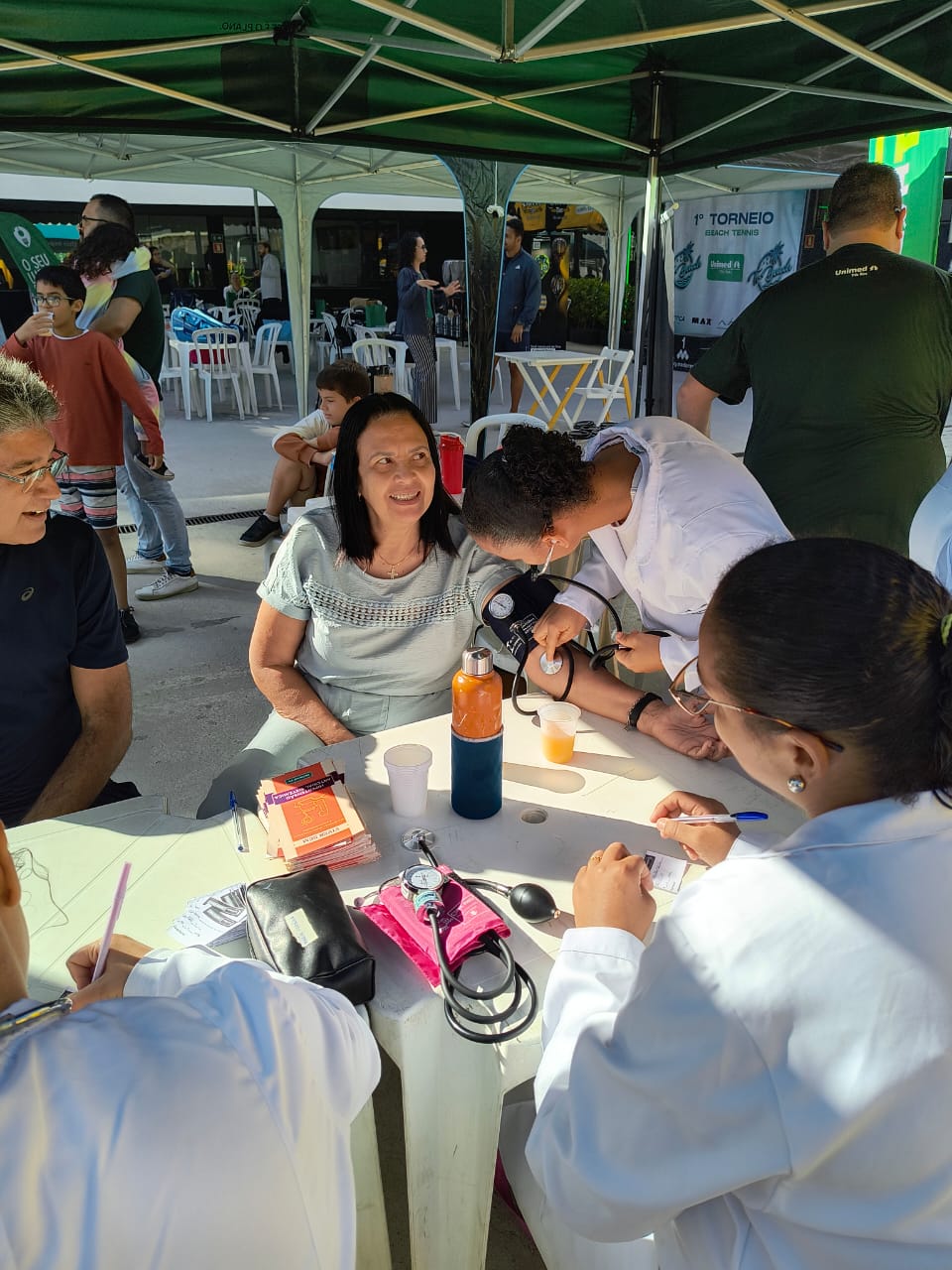 A tenda da operadora contou com a participação de cinco colaboradores dos setores de Vendas, Relacionamento Empresarial, Relacionamento com o Cooperado e da clínica de infusão. Além disso, estagiários da Escola Técnica Três Rios (ETTR) também estiveram presentes para a aferição de pressão no sábado, que foi o Dia Mundial da Hipertensão.