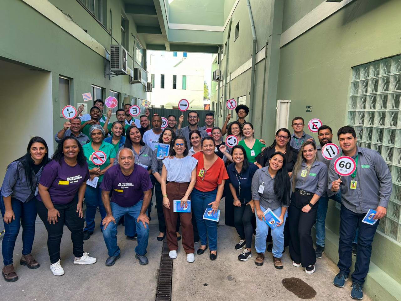 “A conscientização começa no ato de ir e vir com responsabilidade”, afirmou a coordenadora do SESMT, Maria Eline.