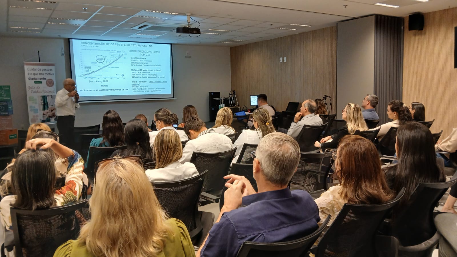 A apresentação do palestrante aos membros da operadora foi conduzida pela coordenadora de Comunicação, Juliana Martarello, e pelo gerente de Gestão da Qualidade, Glauber Ceolin. Trata-se de um compromisso genuíno, que busca engajar colaboradores e clientes em ações sustentáveis percebidas como autênticas.