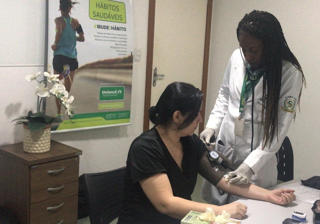 O Programa Viver Bem Empresarial da Unimed Norte Fluminense realizou acompanhamento em saúde de colaboradores e mães de pacientes do Núcleo de Terapias Especializadas (NTE), em Itaperuna e Bom Jesus de Itabapoana, nos dias 19 e 20 de maio, respectivamente, e também no dia 9 e 10 de junho na operadora, além de no dia 11 de junho na Kadosh Contabilidade, empresa parceira. Os atendimentos incluíram aferição de pressão arterial, teste de glicemia capilar e avaliação nutricional, realizados pela nutricionista Maitê Afonso e pela enfermeira Kizzani Ribeiro. No mês de maio, o NTE também promoveu um dia especial com café para as mães dos pacientes, em celebração ao Dia das Mães.