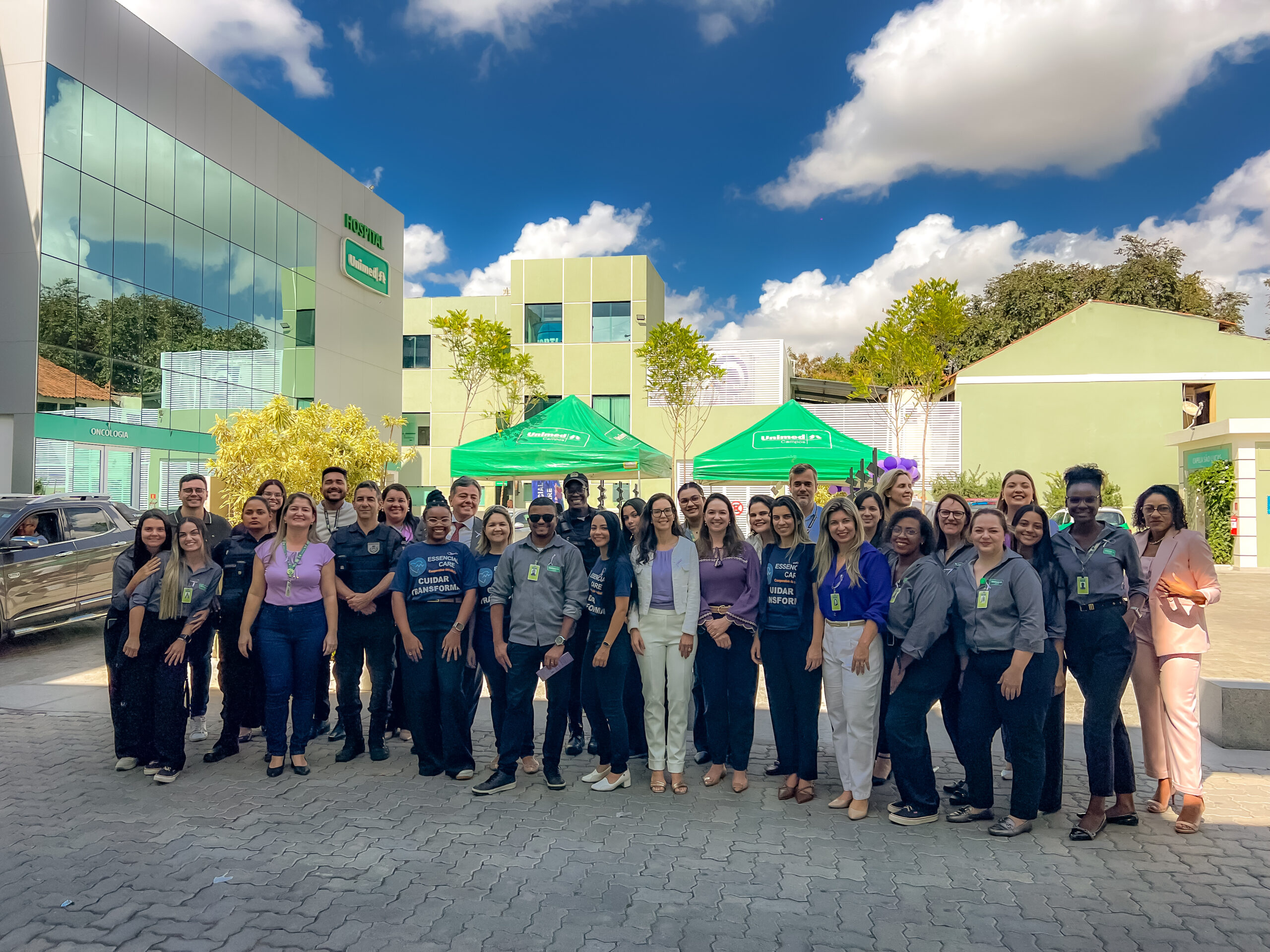 A Unimed Campos realizou, no dia 26 de agosto, no pátio do hospital, uma ação de conscientização em alusão ao Agosto Lilás, mês dedicado ao enfrentamento da violência contra a mulher. A iniciativa foi promovida pelo setor de Responsabilidade Social & Sustentabilidade, em parceria com a OAB 12ª subseção, OAB Mulher, 8º Batalhão de Polícia Militar – Patrulha Maria da Penha e a cooperativa Essencial Care.