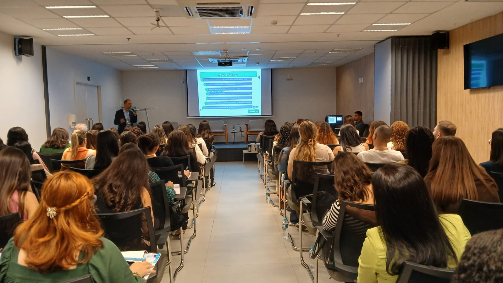 A nutricionista e coordenadora de Nutrição Produção, Tatiana Maciel, apresentou as palestras “Assistência Nutricional Lactário – vigilância e preparo do lactário hospitalar” e “Práticas Alimentares Humanizadas no Ambiente Hospitalar”. Em sua fala, ressaltou: “Precisamos respeitar o hábito e a tradição alimentar de cada paciente, entendendo, por exemplo, por que, em alguns casos, ele rejeita um alimento ou prefere não se alimentar em determinados horários. Esse cuidado humanizado favorece os tratamentos e contribui para que o paciente compreenda a necessidade da alimentação durante a internação” disse.