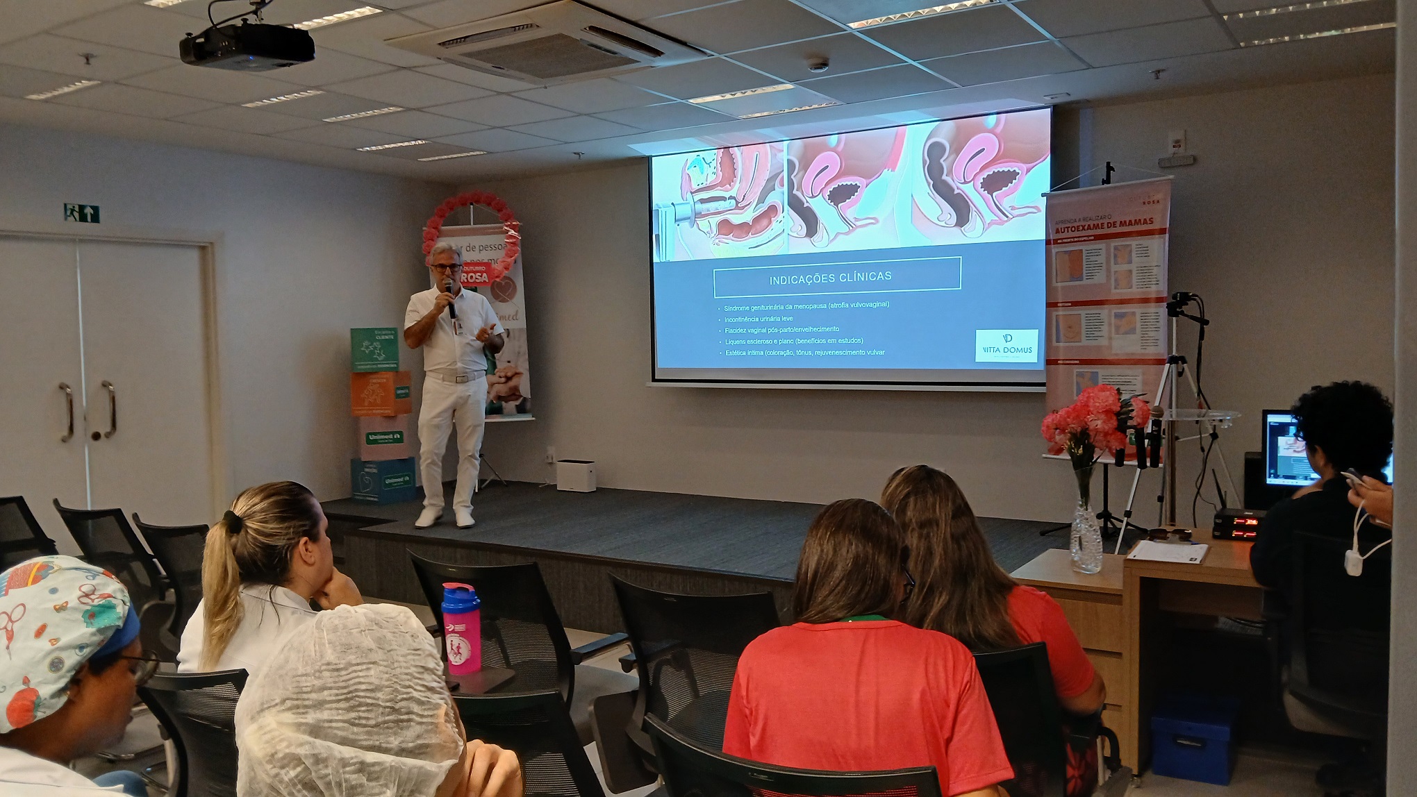 A iniciativa buscou conscientizar colaboradoras e colaboradores sobre a importância da prevenção e do diagnóstico precoce do câncer de mama, além de chamar atenção para doenças femininas, incluindo diversas condições ginecológicas e enfermidades comuns, como atrofia vaginal, infecção e incontinência urinária. O encontro, além de promover o autoconhecimento, também serviu como atualização para os profissionais que atuam diretamente no cuidado diário dentro do espaço hospitalar.
